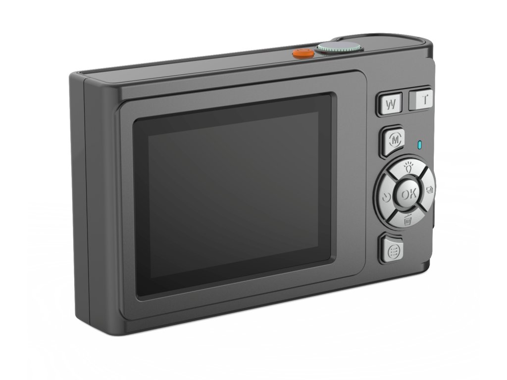 Digitálny fotoaparát so snímačom CMOS s rozlišením 5 MPx Tento ľahký kompaktný fotoaparát bude ideálnym spoločníkom na vašich cestách. Urobíte s ním množstvo fotografií a videí, dokonca vo FULL HD kvalite. Kompaktnému fotoaparátu nechýbajú obľúbené funkcie, ako je detekcia tváre, stabilizácia obrazu alebo režim sériového snímania. Špecifikácia: Fotoaparát je určený na snímanie videa, ktoré je v porovnaní s ostatnými fotoaparátmi veľmi jednoduché: 2,8" LCD displej na zadnej strane Snímač CMOS s rozlišením 5 megapixelov Fotografie s rozlišením až 48 Mpx (interpolované) Video sériového snímania zabudovaný mikrofón Vstavaná dobíjateľná lithium-iónová batéria s kapacitou 700 mAh Vstup pre kartu MicroSD - až 64 GB pre video/fotografia (nie je súčasťou balenia) Nabíjací kábel USB-C súčasťou balenia Rozmery: 10,3 x 2,8 x 6,3 cmDodatočné parametre
