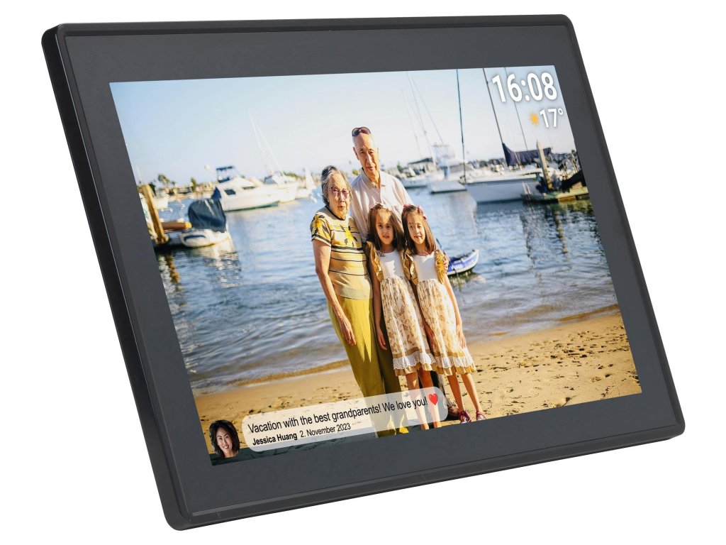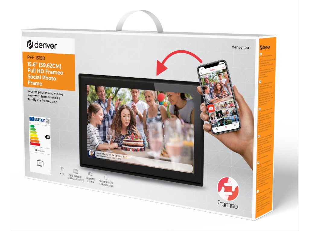 Fotorámik PFF-1515 ponúka nový spôsob sdílenia fotografií s priateľmi a rodinou. Nechajte ich podeliť sa s vami o svoje zážitky prostredníctvom fotorámika! Dotykový displej IPS vám poskytne dostatočne ostrý obraz. Špecifikácia: -15,6" dotykový displej IPS -Rozlíšenie 1920x1080 pixelov -16 GB interná pamäť + slot na kartu MicroSD (max. 32 GB) -RAM: 1 GB -Wi-Fi -Predinštalovaný softvér FRAMEO na prenos fotografií a videí zo smartfónu -prenos fotografií text k obrázkom -absolútna kontrola nad displejom, priateľov možno pridávať a odstraňovať priamo z dotykovej obrazovky -zobrazenie času a predpovede počasia -možnosť nastaviť interval výmeny obrázkov v rozmedzí 10 sek. a 30 min. -funkcia časovača na automatické vypnutie fotorámika FRAMEO v noci -napájací adaptér AC/DC 40,5 x 2,3 x 25,5 cm (ŠxHxV)Dodatočné parametre