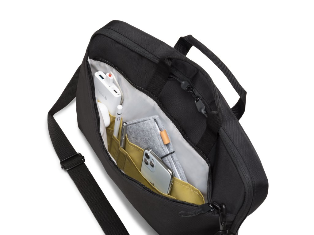 Eco Slim Case MOTION je ľahké a tenké pouzdro na notebook. Zariadenia s uhlopriečkou 10 až 11,6" sú dobre chránené v polstrovanom priestore na notebook. Výsuvná kapsa poskytuje spolehlivú ochranu tabletom s uhlopriečkou do 10,9". Puzdro sa pohodlne prenáša vďaka polstrovanej rukoväti a nastaviteľnému ramennému popruhu. Ďalšia priehradka na zadnej strane je mimořádne praktická na jednoduché uloženie dokumentov. Smartfón alebo iné menšie predmety, ako sú káble, perá alebo nabíjačky, môžete uložiť do praktickej prednej kapsy, aby ste ich mali vždy po ruke. Taška je vyrobená z vodoodpudivého materiálu, ktorý chráni obsah aj počas deštivých dní. Púzdro Eco Slim Case MOTION je preto pre vás ideálne, ak ste stále na cestách a chcete podporiť recykláciu PET lahví ekologickým puzdrom. Vyrobená zo 4,5 recyklovaných PET lahví Polstrovaná priehradka na notebook s penou s vysokou hustotou (HDF) Výsuvná kapsa na tablet do veľkosti 10,9" Predná kapsa s úložným priestorom na mobilné príslušenstvo Priehradka na dokumenty na zadnej strane Pohodlná polstrovaná rukoväť Odnímateľný, Maximálne rozmery zariadenia: 300 x 30 x 205 mm Rozmery výrobku: 320 x 42 x 220 mm Hmotnosť: 0,45 kgDodatočné parametre