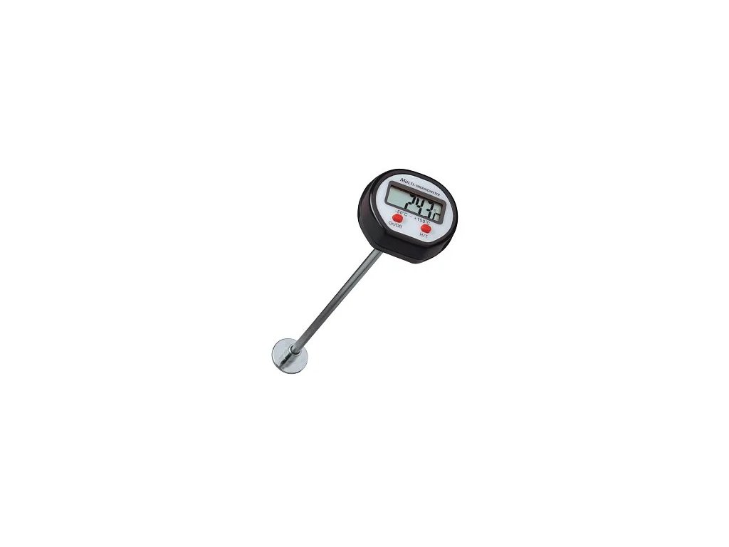 Digitálny teplomer DOT-150 Digitálny povrchový teplomer na všestranné použitie. S DOT-150 môžete ľahko zistiť teplotu hladkých povrchov. Vlastnosti: * Rozsah merania -50 °C až +150 °C Pamäť pre min./max. hodnoty Technické parametre: Kalibrovateľné podľa ISO/DKD Rozlíšenie 0,1 °C Typ snímača Typ K Základná presnosť 1 °C Napájanie 1 x gombíková batéria LR44 Teplotný rozsah -50 až +150 °C Dĺžka snímača 117 mm Hmotnosť 18 g Priložené v dodávke: * Teplomer * 1Dodatočné parametre