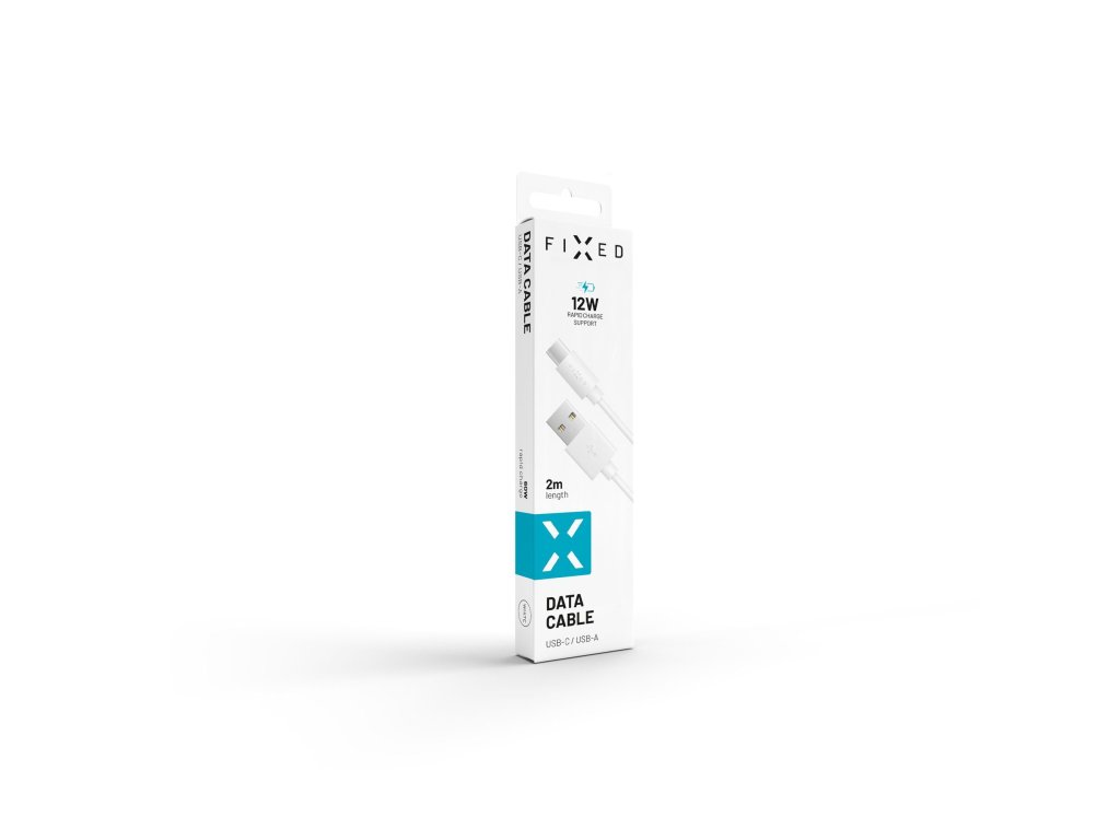 Dlhý dátový a nabíjací kábel FIXED s konektormi USB/USB-C, USB 2.0, 2 metre, biely