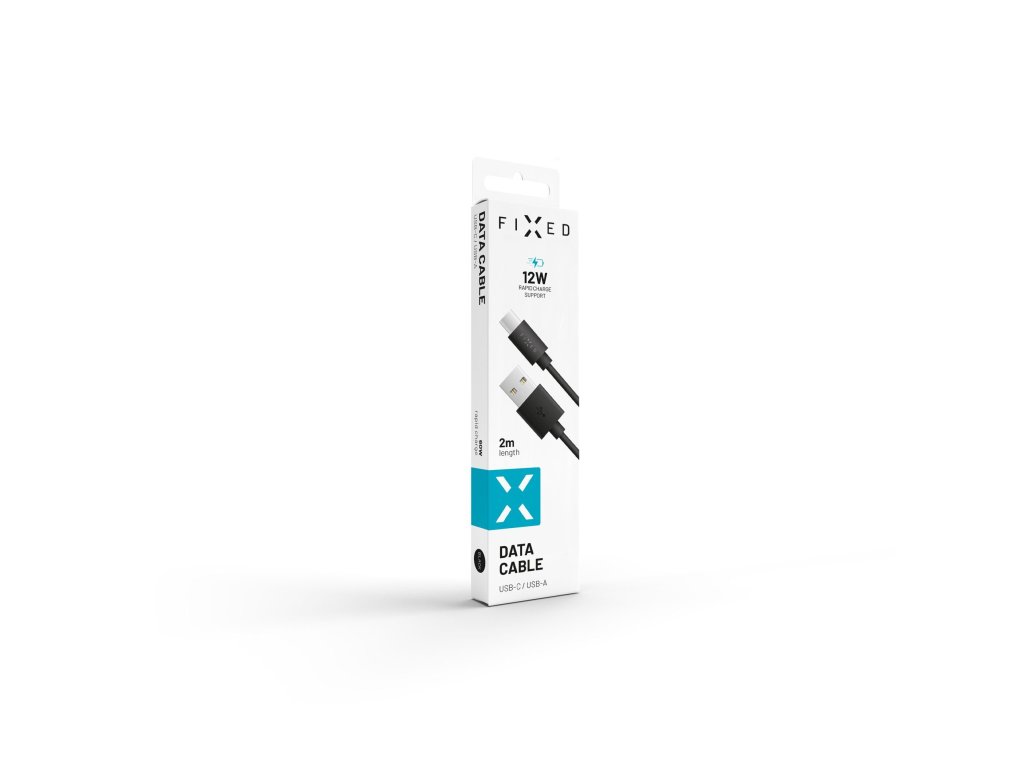 Dlhý dátový a nabíjací kábel FIXED s konektormi USB/USB-C, USB 2.0, 2 metre, čierny