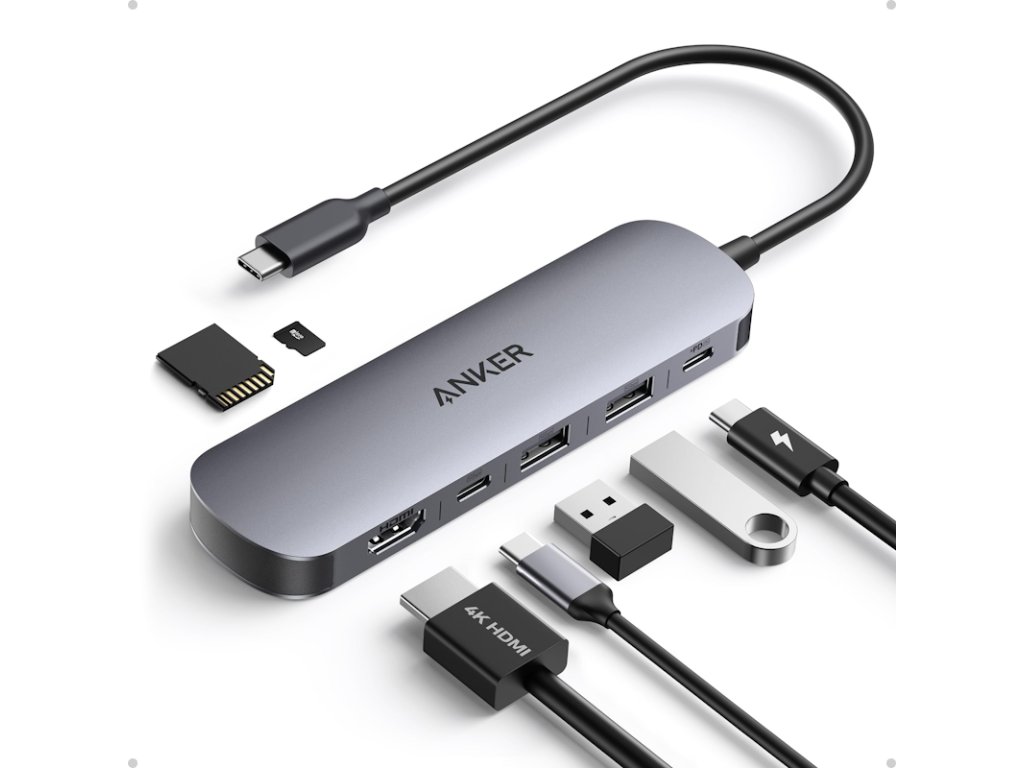 Dokovací stanice 7v1 Anker Nano 100W 2xUSB-C, 2xUSB, 1xHDMI, SD/microSD slot šedá