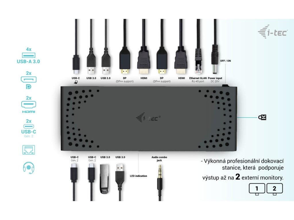 Dokovacia stanica i-tec USB 3.0 / USB-C / Thunderbolt s dvoma displejmi, PD 100 W