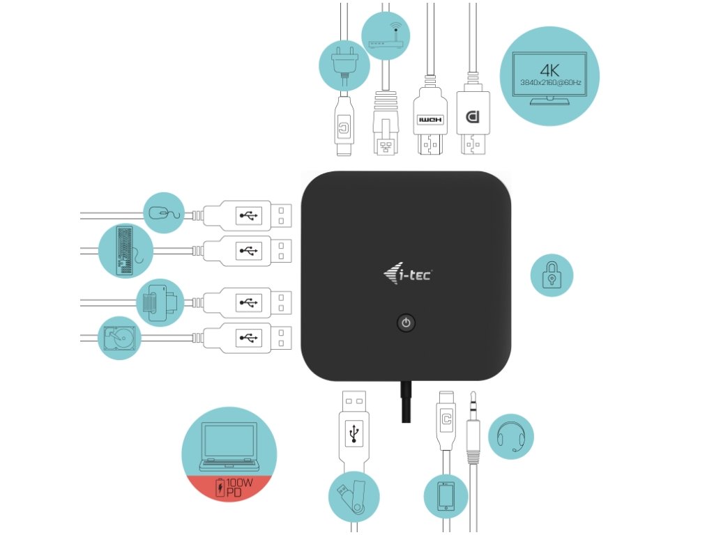 Dokovacia stanica i-tec USB-C HDMI DP s napájaním Power Delivery 100 W