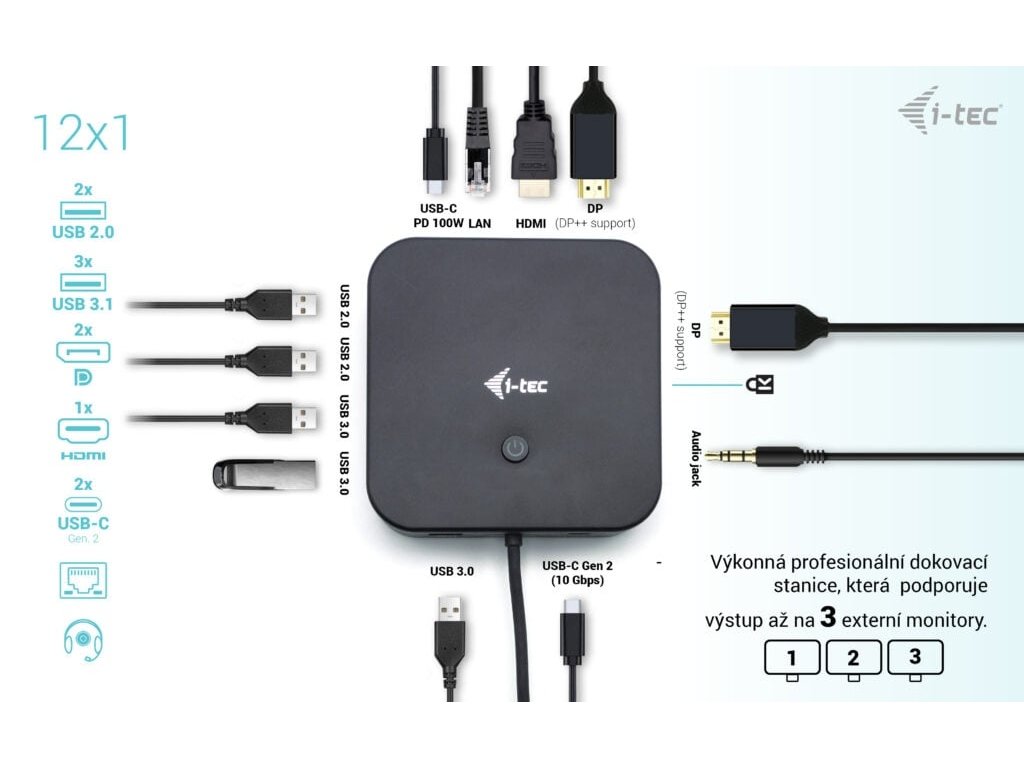 Dokovacia stanica i-tec USB-C HDMI + Dual DP, Power Delivery 100 W + 112 W napájanie
