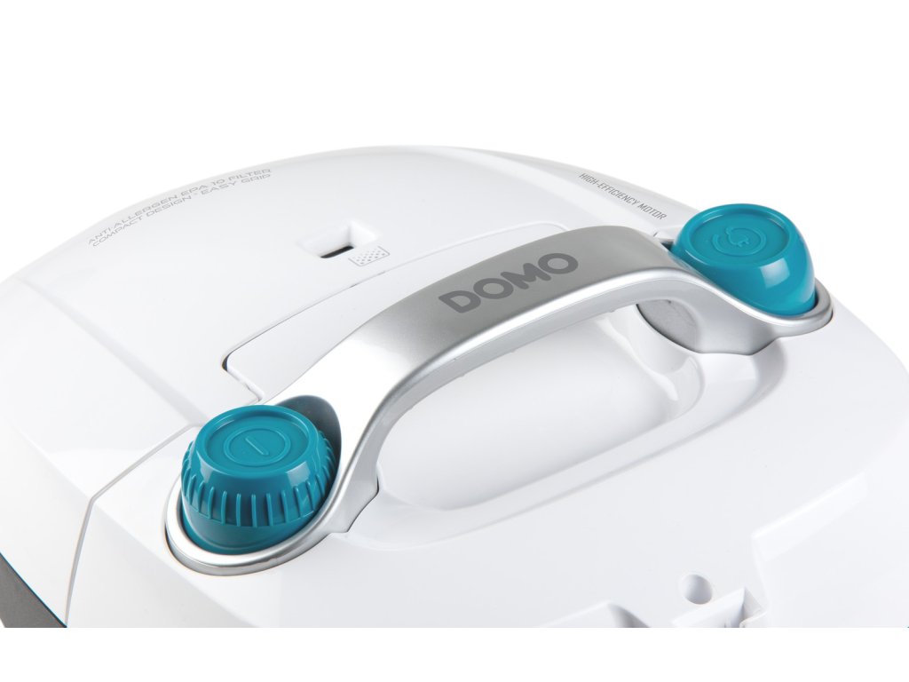 Malý, kompaktný vysávač DOMO DO1152S s nízkou hmotnosťou a veľkou rukoväťou môžete bez námahy prenášať kamkoľvek potrebujete, alebo ho dokonca držať v ruke počas vysávania. Manévrovateľnosť vysávača je jeho hlavnou doménou : mäkké gumené kolesá nepoškriabu žiadny povrch a predné kolečko je otočné o 360°.