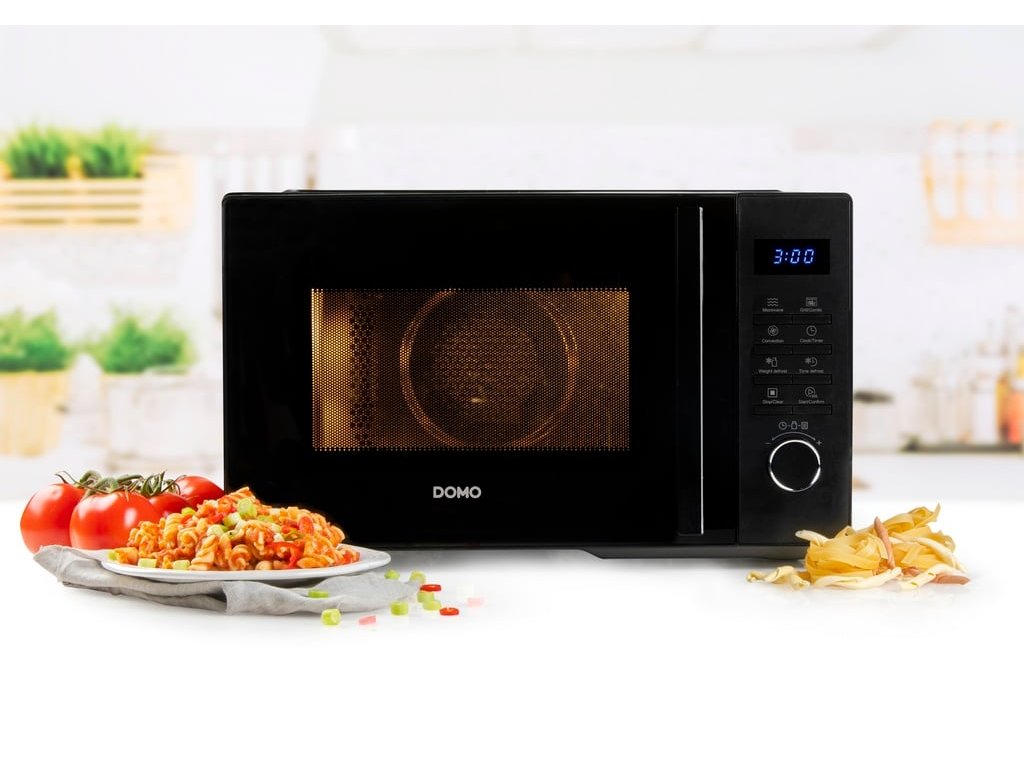 Kombinovaná mikrovlnná rúra s teplovzdušnou rúrou a grilom dokáže kombinovať všetky spôsoby ohrevu a spojiť ich do jedného programu, takže môžete variť všetko v jednom prístroji. Špeciálna funkcia kombinácie programov umožňuje nastaviť napríklad rozmrazovanie a hneď po rozmrazení automaticky spustiť teplovzdušné pečenie bez akéhokoľvek ďalšieho vášho zásahu. Veľmi praktickou funkciou je aj upozornenie na uplynutie polovice času grilovania alebo rozmrazovania, aby ste mohli skontrolovať stav rozmrazovania alebo grilovania a v prípade potreby potraviny alebo prísady otočiť. Vďaka pamäťovej funkcii je možné akýkoľvek program dočasne pozastaviť jednoduchým otvorením dvierok a po ich zatvorení ho opäť spustiť.Základné parametre: