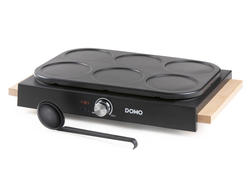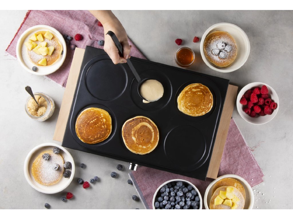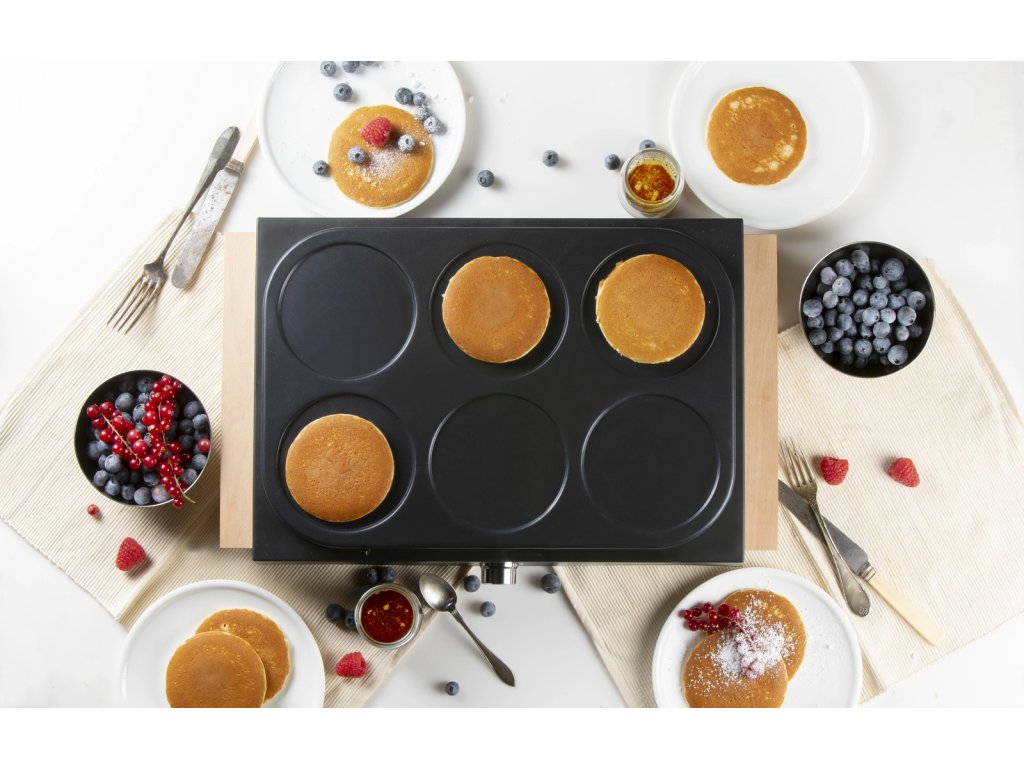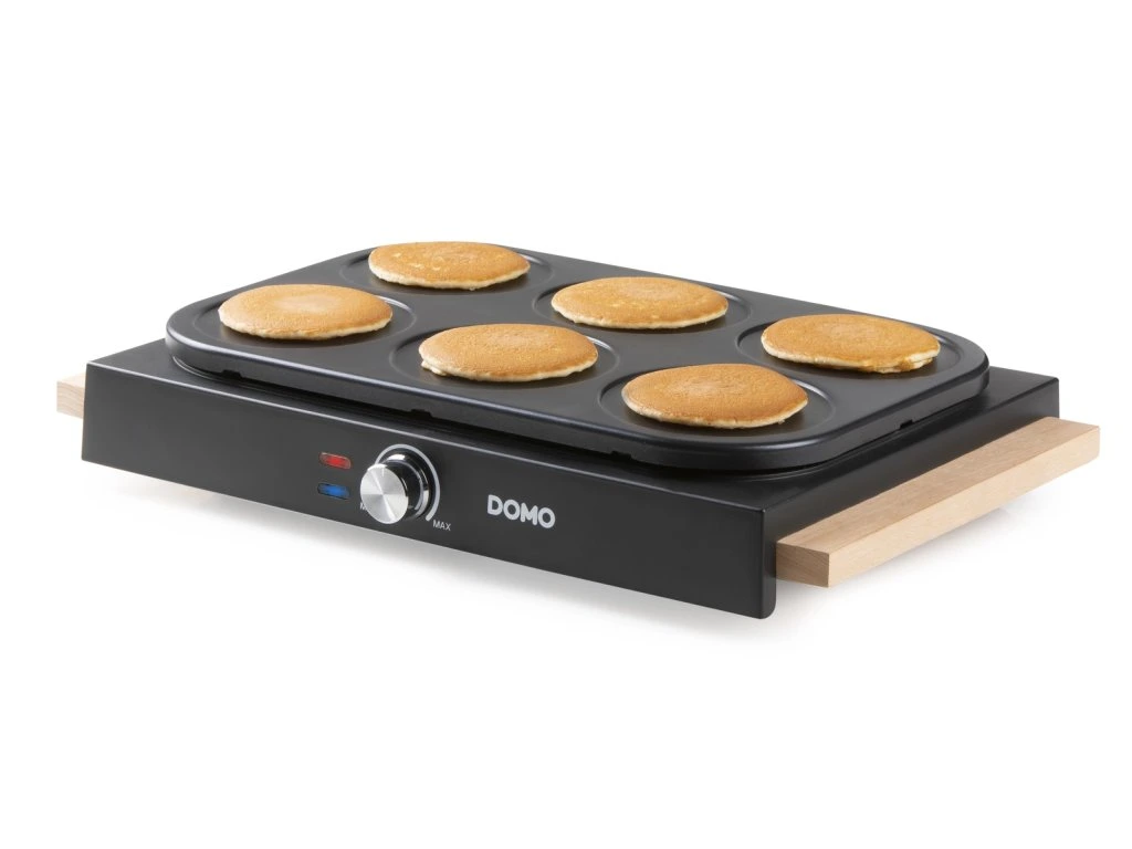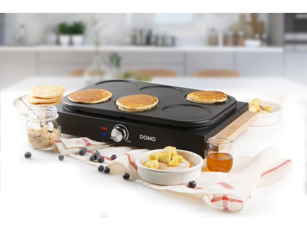 Zoberte celú rodinu a upečte si pravé americké palacinky.Na elektrickej panvici na palacinky DO8717PN od spoločnosti DOMO môžete naraz pripraviť až 6 dokonalých palaciniek, prípadne si môžete pripraviť aj palacinky alebo zemiakové placky. Panvica sa veľmi rýchlo zohreje a vďaka kvalitnému nepriľnavému keramickému povrchu ILAG bude jej údržba hračkou a na vyprážanie nebudete potrebovať ani olej.
