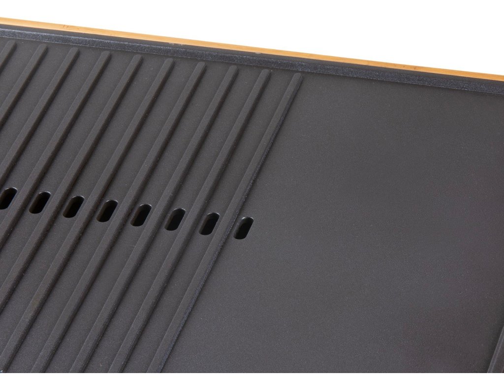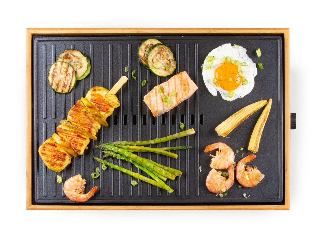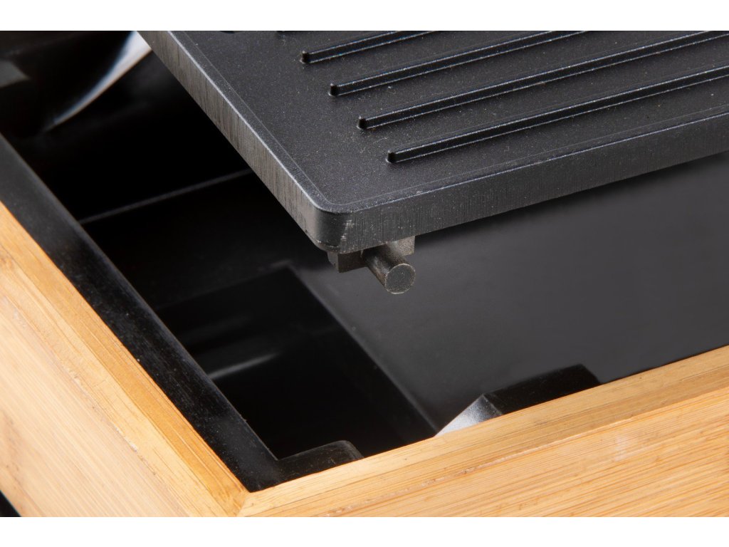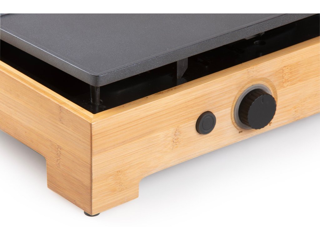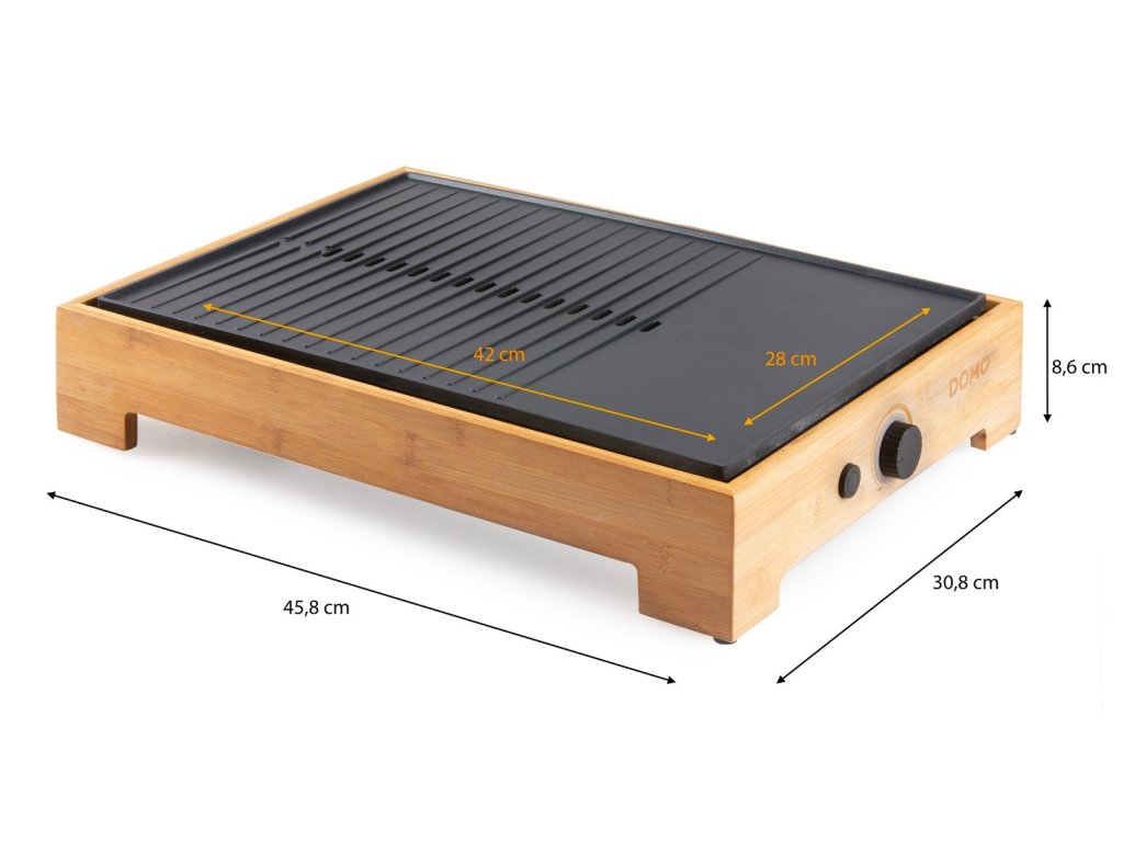Grilovacia plocha s rozmermi 42 x 28 cm je vhodná na intímne večere a/alebo večery s priateľmi či rodinou. Termostat a príkon 1 800 W zaručujú zahriatie na ideálnu teplotu v krátkom čase!Vychutnajte si grilované pokrmy s týmto štýlovým grilom PLANCHA v prémiovom dizajne z pravého bambusu a nepriľnavým povrchom bez PFOS.