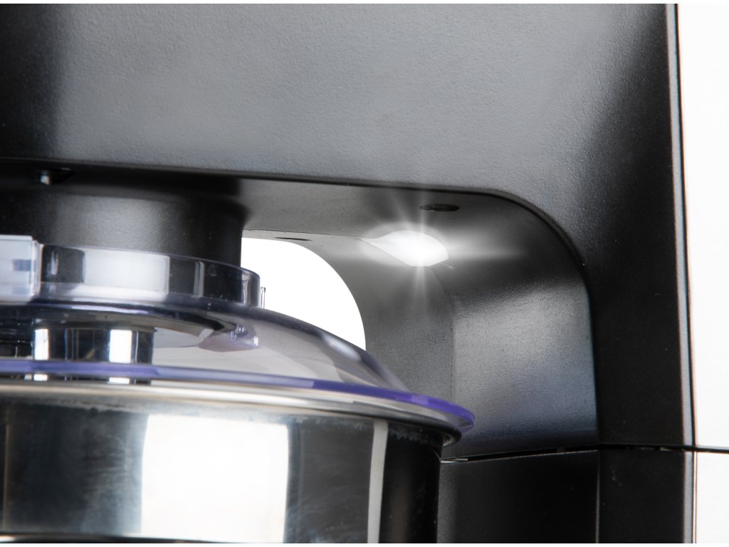 Kuchyňský robot je chytře a bezpečně navržen s LED osvětlením, termostatickou pojistkou a úložným prostorem pro kabel.