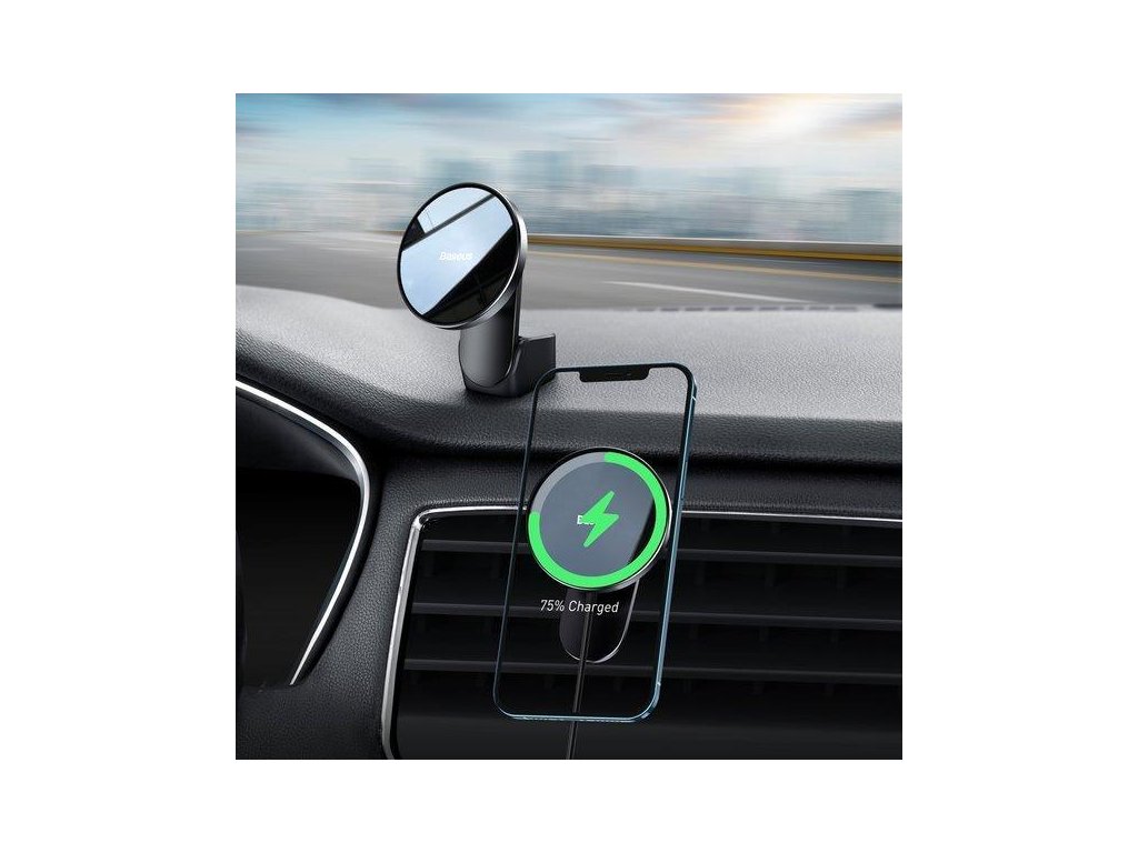 Držiak Baseus Big Energy s bezdrôtovým nabíjaním 15 W čierny (kompatibilný s Apple iPhone 12 Series)