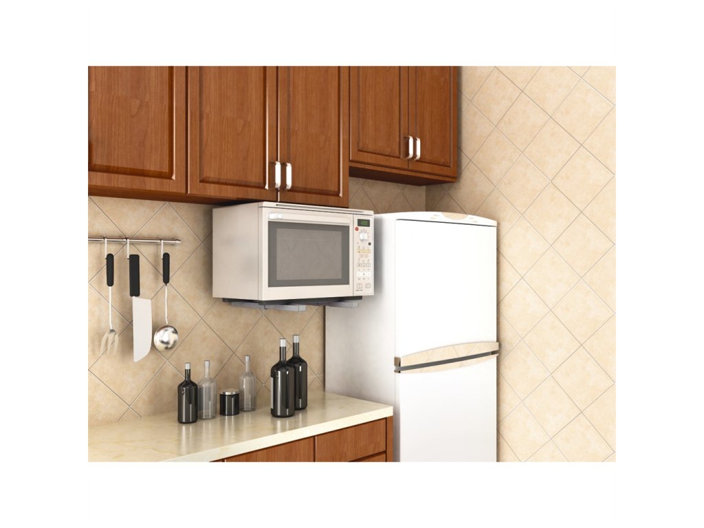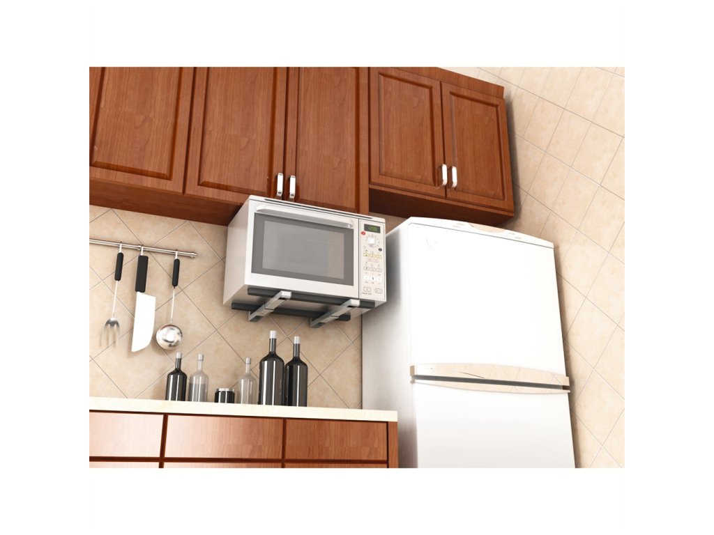 - univerzálny držiak na mikrovlnné rúry, grily a iné elektrické zariadenia - jednoduchá montáž na stenu - nastaviteľná hĺbka a dĺžka - Stabilné a bezpečné umiestnenie spotrebiča - nosnosť: max. 30 kg - šírka nástenného držiaka: 43 cm (pozri obrázok) - hĺbka nosných ramen: 38,5-54 ramenami: 23,4 cm (pozri obrázok) - farba: striebraDodatočné parametre