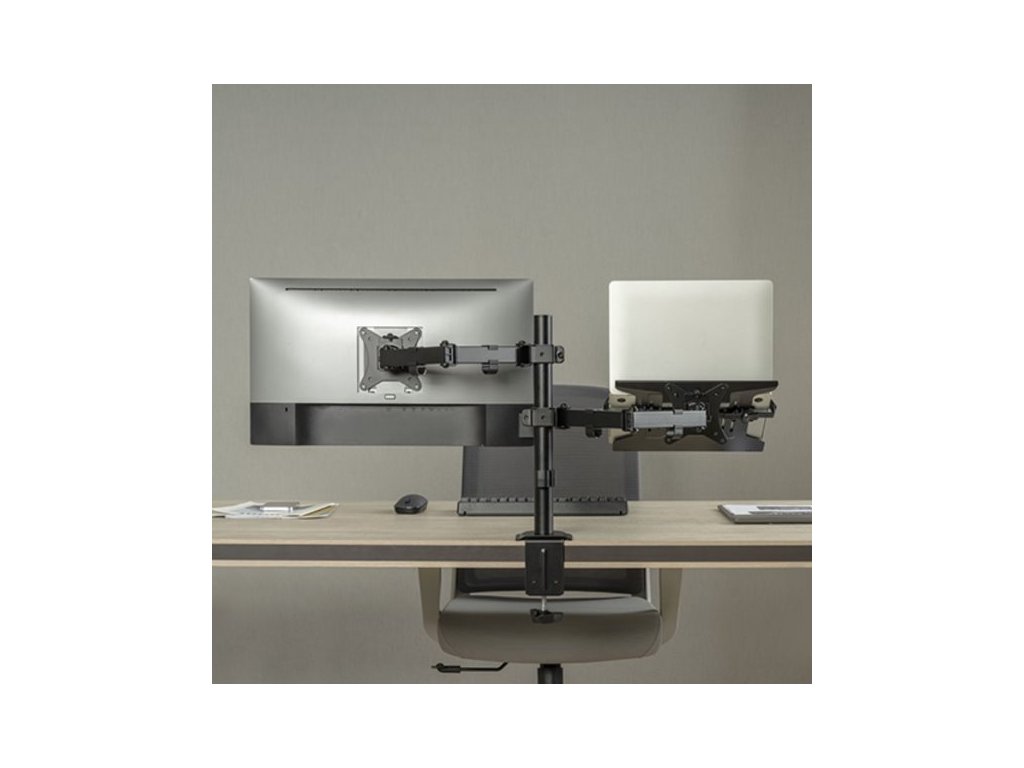 Držiak monitora Brateck LDT66-C024ML je inovatívny stolný držiak, ktorý bol navrhnutý s ohľadom na vaše potreby a zlepšenie pracovného priestoru. Tento všestranný stolný držiak je ideálny na použitie s rôznymi typmi monitorov, či už pracujete z domu, v kancelárii alebo vo vzdelávacom prostredí. S držiakom monitora Brateck sa vaše pracovisko stane efektívnejším a pohodlnejším. Vďaka odolnej oceľovej konštrukcii poskytuje stabilnú podporu pre monitor s uhlopriečkou 17" až 32" s hmotnosťou až 9 kg a notebook s hmotnosťou až 4 kg. Flexibilná konštrukcia na dostatočné nastavenie výšky a pozorovacích uhlov s možnosťou nastavenia orientácie monitora na výšku alebo na šírku. Súčasťou balenia sú priechodky a svorky na inštaláciu na takmer akúkoľvek pracovnú plochu. Odnímateľná doska VESA pre užívateľsky prívetivú inštaláciu. Súčasťou balenia sú káblové spony na uľahčenie organizácie vedenia káblov. Hlavné vlastnosti: • Flexibilné nastavenie polohy: Držiak umožňuje ľahké nastavenie výšky, nastaviteľný náklon monitora v uhle +/- 45 °, otočenie monitora o 360 °, nastavenie uhlov ramena o 270 ° (3 závesy po 90 °) takže môžete ľahko nájsť optimálnu pozíciu pre pohodlné a ergonomické používanie. Odnímateľná doska VESA umožňuje jednoduchú inštaláciu monitora. • Univerzálna kompatibilita: Tento stolný držiak je kompatibilný s väčšinou monitorov o veľkosti od 17" do 32" palcov as VESA štandardmi 75x75mm a 100x100mm. Nezáleží na tom, či používate LCD, LED alebo OLED monitor, držiak monitora Brateck poskytne bezpečné a stabilné uchytenie. • Odolná konštrukcia: Držiak je vyrobený z vysoko kvalitného materiálu, ktorý zaisťuje stabilitu a odolnosť. • Jednoduchá inštalácia: Držiak ich dodávam s kompletným montážnym príslušenstvom, vďaka ktorému je možné ho ľahko namontovať na stôl v priebehu niekoľkých minút. Jednoduchá montáž pomocou svorky na dosky s hrúbkou 10-85 mm alebo pomocou priechodky na dosky s hrúbkou 10-40 mm. Prednosti: • Zlepšuje ergonómiu a pohodlie pri práci s monitorom • Ušetrí miesto na vašom stole a pomôže udržovať veci organizované • Kompatibilné so širokou škálou monitorov a veľkostí • Robustná a stabilná konštrukcia pre dlhodobé používanie Užite si optimálne pracovné prostredie a zvýšte svoju produktivitu používaním držiakov monitorov Brateck. Vďaka nastaviteľnosti a univerzálnej kompatibilite vám tento produkt ponúkne skvelý zážitok pri práci na vašom počítači.Dodatočné parametre
