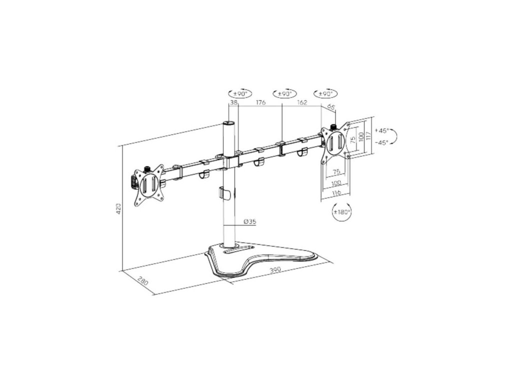 Držiak monitora Brateck LDT66-T024 je inovatívny stolný držiak, ktorý bol navrhnutý s ohľadom na vaše potreby a zlepšenie pracovného priestoru. Tento všestranný stolný držiak je ideálny na použitie s rôznymi typmi monitorov, či už pracujete z domu, v kancelárii alebo vo vzdelávacom prostredí. S držiakom monitora Brateck sa vaše pracovisko stane efektívnejším a pohodlnejším. Vďaka odolnej oceľovej konštrukcii poskytuje stabilnú podporu pre dva monitory s uhlopriečkou 17" až 32" a hmotnosťou až 9 kg na rameno. Flexibilná konštrukcia na dostatočné nastavenie výšky a pozorovacích uhlov s možnosťou nastavenia orientácie monitora na výšku alebo na šírku. Odnímateľná doska VESA umožní užívateľsky prívetivú inštaláciu. Praktický slot pre telefón umiestnený na základni. Súčasťou balenia sú káblové spony na uľahčenie organizácie vedenia káblov. Hlavné vlastnosti: • Flexibilné nastavenie polohy: Držiak umožňuje ľahké nastavenie výšky, nastaviteľný náklon monitora v uhle +/- 45 °, otočenie monitora o 360 °, nastavenie uhla ramien o 270 ° (3 závesy po 90 ° na každom ramene) takže môžete ľahko nájsť optimálnu pozíciu pre pohodlné a ergonomické používanie. Odnímateľná doska VESA umožňuje jednoduchú inštaláciu monitora. • Jemné nastavenie výšky VESA dosiek umožňuje precízne zarovnanie výšky oboch monitorov pre bezproblémový zážitok z prezerania vedľa seba. • Univerzálna kompatibilita: Tento stolný držiak je kompatibilný s väčšinou monitorov o veľkosti od 17" do 32" palcov as VESA štandardmi 75x75mm a 100x100mm. • Odolná konštrukcia: Držiak je vyrobený z vysoko kvalitného materiálu, ktorý zaisťuje stabilitu a odolnosť. • Jednoduchá inštalácia: Držiak je dodávaný s kompletným montážnym príslušenstvom, vďaka ktorému je možné ho ľahko namontovať v priebehu niekoľkých minút. Prednosti: • Zlepšuje ergonómiu a pohodlie pri práci s monitorom • Ušetrí miesto na vašom stole a pomôže udržovať veci organizované • Kompatibilné so širokou škálou monitorov a veľkostí • Robustná a stabilná konštrukcia pre dlhodobé používanie Užite si optimálne pracovné prostredie a zvýšte svoju produktivitu používaním držiakov monitorov Brateck. Vďaka nastaviteľnosti a univerzálnej kompatibilite vám tento produkt ponúkne skvelý zážitok pri práci na vašom počítači.Dodatočné parametre