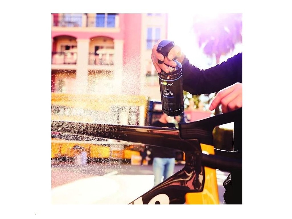 Rozprašovač s tryskou je navrhnutý tak, aby zabezpečil rovnomerné rozloženie a rovnomerné nanesenie čistiaceho prostriedku na vaše kolo vrátane ťažko prístupných miest. Na dosiahnutie najlepších výsledkov nechajte Bio Filth Fighter pôsobiť niekoľko minút, ťažko odstrániteľné nečistoty očistiete kartáčom a opláchnite čistou vodou. Tip: Prepínajte medzi penovým a tradičným striekaním otvorením krytu peny na prednej strane prídavného postrikovača. Tento čistiaci prostriedok na bicykle v spreji vám umožní ľahko vyčistiť každú časť vášho bicykla vrátane hnacieho ústrojenstva. Jeho zloženie je optimalizované tak, aby rozpúšťal najťažšie odstrániteľné nečistoty, ako je bláto, olej a pot, bez toho, aby poškodil vaše kolo, jeho časti alebo životné prostredie. Vysokokvalitné zložky úplne a rýchlo neutralizujú korozívne kyseliny a soli. Bio Filth Fighter je vhodný pre všetky stredne až silne znečistené časti bicykla a je úplne bezpečný pre karbónové materiály. Jedinečné zloženie je obľúbené u viacerých mechanikov profesionálnych cyklistických tímov.Dodatočné parametre