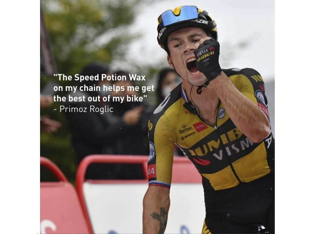 Ak chcete zabezpečiť dobrú priľnavosť, uistite sa, že ste reťaz dôkladne odmastili. Aj keď je reťaz nový, na reťazi sa nachádza mazivo z výroby, ktoré zabraňuje priľnutiu voskového prípravku ku kovovému povrchu. Po použití čističa reťaze na odmastenie reťaze ho dôkladne opláchnite a nechajte úplne vyschnúť. Pred otvorením láhev vždy dôkladne pretrepte, kyslík v láhvi môže spôsobiť stuhnutie vosku v dyhe láhve a najlepšie je zabezpečiť, aby sa obsah dobre premiešal. Vosk Speed Potion vždy aplikujte aspoň 2 hodiny pred jazdou, najlepšie dlhšie (24 hodín). Takto môže vosk úplne stuhnúť. Priľnavosť bude najlepšia po 24 hodinách, čo bude mať pozitívny vplyv na trvanlivosť náteru. Vyskúšajte dokonalý vosk na reťaz, vďaka ktorému budete rýchlejší, s týmto minivoskom. Čo ak vám rýchlosť nestačí? Vyskúšajte ho teraz! Speed Potion Wax je dokonalý vosk na reťaze bicyklov. Je to vosk najvyššej kvality znižujúci trenie o viac ako 17 % v jedinečnom zložení, vďaka ktorému budete rýchlejší. Vosk Speed Potion Wax je mimoriadne odolný, poskytuje maximálnu ochranu proti opotrebovaniu a udržuje reťaz čistú. Každý watt stratený triením je o jeden watt menej, ktorý je k dispozícii na pohon vášho bicykla. Nedovoľte, aby sa trenie stalo prekážkou medzi vámi a vašimi cieľmi. Vosk Speed Potion Wax bol vyvinutý v spolupráci s profesionálnymi jazdcami a mechanikmi, ktorí každý deň pretekajú na závodoch World Tour. Speed Potion Wax je najrýchlejšie mazivo, aké existuje. Speed Potion Wax: - Zrýchľuje vás - je určený pre jazdcov, ktorí dosahujú nadpriemerné výkony. - Umožňuje dlhé intervaly údržby. - udržuje reťaz suchú a čistú. - je dlhotrvajúci a odolný. - bola vyvinutá s ohľadom na profesionálnych jazdcov.Dodatočné parametre