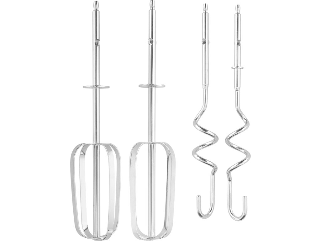 Okrem samotného šľahača nájdete v balení aj potrebné príslušenstvo. 2 šľahacie metly sú ideálne na spracovanie cesta, bielkov, šľahačky, majonézy a pyré alebo na miešanie/šľahanie omáčok a krémových práškov. Na druhej strane 2 hnetacie metly sú skvelé na prípravu kysnutého alebo treného cesta alebo cesta na zemiakové knedle a zmesí na zemiakové lupienky. Všetky nástavce možno ľahko vymeniť pomocou praktického tlačidla na vybratie metiel alebo hákov.