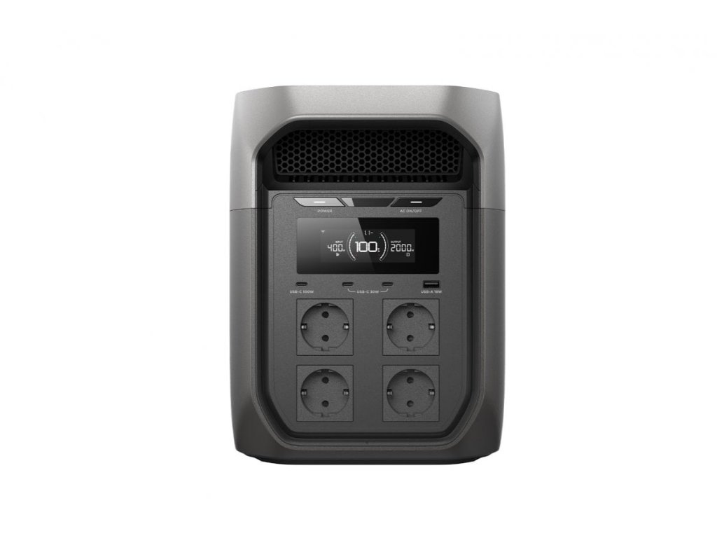 Přenosná bateriová stanice EcoFlow DELTA 3 Max nabízí jmenovitý výkon 2 400 W a s využitím originální funkce X-Boost je navíc připravena napájet některé typy spotřebičů s příkonem až do 3 200 W. Její kapacita baterie 2 048 Wh umožňuje dodávat energii naprosté většině běžných domácích spotřebičů a hodí se i jako záložní zdroj (UPS) pro případy výpadků elektrické sítě, a to s rychlostí přepnutí 10 ms. EcoFlow DELTA 3 Max je bateriová stanice s akumulátorem LiFePO4 a kapacitou 2 048 Wh. Má několik výstupů, včetně zásuvek střídavého proudu nebo portů USB-A a USB-C, kterými lze napájet naprostou většinu běžných spotřebičů a zařízení. Různé možnosti nabíjení umožňují využívat jednotlivé způsoby podle aktuálních potřeb. Stanice tedy představuje nejen velmi spolehlivý, ale zároveň i velmi flexibilní zdroj energie. Disponuje i velmi prostorným displejem, který přehledně zobrazuje informace o aktuálních parametrech jejího provozu. Mnoho způsobů nabíjení Stanice se nabíjí prostřednictvím síťové zásuvky, solárních panelů, autozásuvky nebo generátoru. Je možné ji připojit i k systému PowerStream s komplexnějším využitím solární energie, které přináší mj. i snížení celkových nákladů. Široké možnosti napájení spotřebičů DELTA 3 Max může napájet naprostou většinu běžných domácích spotřebičů, včetně chladniček, televizorů a počítačů. Je dobře použitelná i v přírodě nebo na jiných odlehlých místech, kde může bez problémů pohánět zařízení používané při rekreaci i elektrické pracovní nástroje. X-Boost: napájení přístrojů s vyšším příkonem X-Boost je inovativní technologie, která je exkluzivní pro bateriové stanice EcoFlow a této stanici umožňuje napájet některé spotřebiče s příkonem až do 3 200 W. Zdroj nepřerušovaného napájení (UPS) DELTA 3 Max může sloužit rovněž jako záložní zdroj pro nepřetržité napájení důležitých spotřebičů při výpadcích elektrické sítě, a to s rychlostí přepnutí 10 ms. Vzdálené ovládání chytrou aplikací Prostřednictvím chytré mobilní aplikace EcoFlow lze provoz stanice sledovat a ovládat z jakéhokoliv místa s přístupem na internet. Technické specifikace Obecné Model: EF-DL-H02-3M Čistá hmotnost: cca 20,3 kg Rozměry: cca 494 × 239 × 305 mm Wi-Fi (2,4 G): podporováno Bluetooth: podporováno Provozní nadmořská výška: < 3000 m n. m. Kategorie přepětí: II Stupeň znečištění: 2 Stupeň ochrany: IP20 UPS: 10 ms Výstup AC výstup (pouze vybíjení) EU: 230 V ~ 50 Hz, celkem 2400 W, max. 10 A (4x) na port AC výstup (režim Bypass) EU: 220–240 V ~ 50/60 Hz, celkem 8 A, max. 8 A (4x) na port Výstupní USB porty USB-A (1x): 5 V ? 3 A / 9 V ? 2 A / 12 V ? 1,5 A, max. 18 W USB-C (1x): 5 V ? 3 A / 9 V ? 3 A / 12 V ? 3 A / 15 V ? 3 A / 20 V ? 5 A, max. 100 W USB-C (2x): 5 V ? 3 A / 9 V ? 3 A / 15 V ? 2 A, max. 30 W na port, celkem 30 W 12V výstupní DC port 12,6 V ? 10 A, celkem 126 W Vstup AC vstup (pouze nabíjení) EU: 220–240 V ~ 10 A, 50/60 Hz AC vstup (režim Bypass) EU: 220–240 V ~ 10 A, 50/60 Hz DC/solární vstup Solární: 11-60 V ? 13 A, max. 500 W DC: 12 V ? max. 8 A, 24 V ? max. 8 A, 48 V ? max. 10,4 A Baterie Jmenovitá kapacita: 2048 Wh (51,2 V ? 40 Ah) Typ článků: LFP (LiFePO4) Typ ochrany: ochrana proti přepětí, ochrana proti přetížení, ochrana proti přehřátí, ochrana proti zkratu, ochrana proti nízké teplotě, ochrana proti nízkému napětí, ochrana proti nadproudu. Teplota prostředí Optimální provozní teplota: 20 °C až 30 °C Teplota při nabíjení: 0 °C až 45 °C Teplota při vybíjení: –10 °C až 45 °C Skladovací teplota: –10 °C až 45 °C (optimálně 20 °C až 30 °C) Obsah balení 1. Přenosná bateriová stanice EcoFlow DELTA 3 Max (1 ks) 2. Nabíjecí AC kabel (1 ks) 3. Návody a záruční listDodatočné parametre