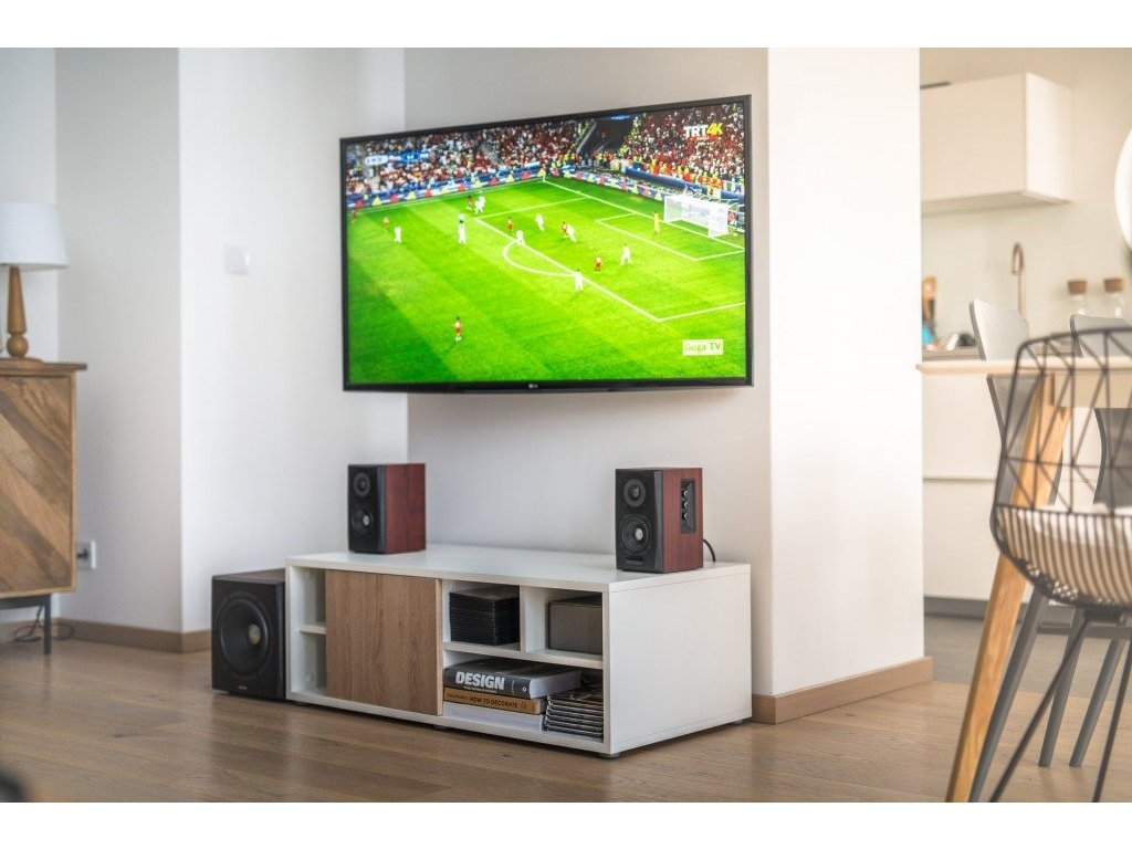 EDIFIER S350DB je sada aktívnych reproduktorov, ktoré okrem Bluetooth 4.1 a technológie Qualcomm aptX ponúkajú možnosť pripojenia zariadení prostredníctvom vstupov RCA, optického, koaxiálneho alebo AUX. Optický vstup navyše ponúka vzorkovaciu frekvenciu 24Bit/48KHz. Ovládacie knoflíky na bočnej strane monitora umožňujú jednoduché ovládanie hlasitosti, basov a výšok. Okrem toho možno funkcie ovládať pomocou diaľkového ovládača, ktorý poskytuje aj možnosť prepínania medzi vstupmi. Monitory sú vybavené funkciami DSP (Digital Signal Processing) a DRC (Dynamic Range Control), majú kompaktné rozmery a vysoký výkon. Čierna farba v kombinácii s tmavohnedým drevom dotvára celkový elegantný dizajn. Súčasťou balenia je aj štýlový diaľkový ovládač. Technické špecifikácie: - Celkový výkon: 150 W - Satelitné reproduktory: 2x15W + 2x25W Subwoofer: 70W - Odstup signálu od šumu: So: ? 80 dBA Sw: ? 85 dBA - Vstupná citlivosť: Satelitné reproduktory: 600 mV ± 50 mV (vstup), 750 mV ± 50 mV (vstup AUX), subwoofer: 300 mV ± 50 mV (vstup), 350 mV ± 5. Satelitné reproduktory: 400 ± 50 mFFS (optický), 400 ± 50 mFFS (Bluetooth). Subwoofer: 200 ± 20 mFFS (optický), 200 mV ± 20 mFFS (Bluetooth) - Zvukový vstup: RCA stereo, optický vstup, koaxiálny vstup, Bluetooth - Ovládanie hlasitosti, nastavenie basov/výšok na diaľkovom ovládaní - Woofer: 8-palcový? - 3,5 palca, magneticky tienený, 8? - Výškový reproduktor: Asi 25 mm, magneticky tienený, 6? - Hmotnosť: približne 19,00 kg - Rozmery: Subwoofer: 312 x 265 x 289 mm, Satelitné reproduktory: 156 x 127 x 217 mm (Š x V x H)Dodatočné parametre