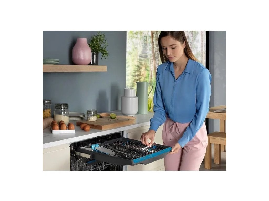 Kľúčové vlastnosti Electrolux 700 FLEX MaxiFlex EEM48321L Technológia AirDry s automatickým otvorením dverí a prirodzeným sušením Rýchle nastavenie funkcie QuickSelect Svetelná indikácia TimeBeam Inteligentný program AutoSense Zásuvka MaxiFlex Rotujúce ramená SatelliteClean Programy 160 minút zašpinenie Eco MachineCare program na čistenie vnútra spotrebiča Quick 30 minút Opláchnutie a čakanie Kompletné vysvetlenie programov nájdete v návode. Vlastnosti Hlboká príborová zásuvka MaxiFlex s nastaviteľnými oddeľovacími priečkami Dvojito rotujúce rameno SatelliteClean Funkcia QuickSelect pre rýchle nastavenie programu Svetelná indikácia TimeBeam informuje o stave umývacieho programu Systém sušenia AirDry využíva prirodzené prúdenie vzduchu Panel s textom a symbolmi Možnosť odloženého štartu extra silný program Spínací plavák zabraňuje zaplaveniu Vodný senzor detekuje úroveň zašpinenia vody a upravuje jej spotrebu Inventorový motor 2 nastaviteľné nôžky Funkcia Auto Off šetrí energiu a automaticky sa spustí po dokončení programu Obrazové materiály sú ilustračné a umývačka sa dodáva bez dekoru na dverách Vnútorná výbava Spikes, skladacie poličky na šálky Dolný košík má 4 rozložiteľné tanierové poličky Technické parametre Počet sád 14 Spotreba el. energie 0,832 kWh/cyklus Spotreba vody 10,5 l/cyklus Hlučnosť 44 dB Výška 81,8 – 87,8 cm Šírka 59,6 cm Hĺbka 55 cm Výška pre zabudovanie 82 – 88 cm Šírka pre zabudovanie 60 cm Hĺbka pre zabudovanie informácií výrobcu, nie sú do nich započítané presahy jednotlivých častí spotrebiča (napr. ovládací panel, dvierka, apod.).Dodatočné parametre