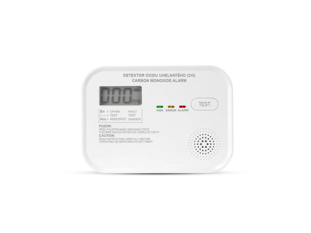 Batériový detektor oxidu uhoľnatého s českým popisom a displejom na vizuálnu indikáciu zvýšenej koncentrácie CO.Spĺňa novú normu EN 50291-1:2018!