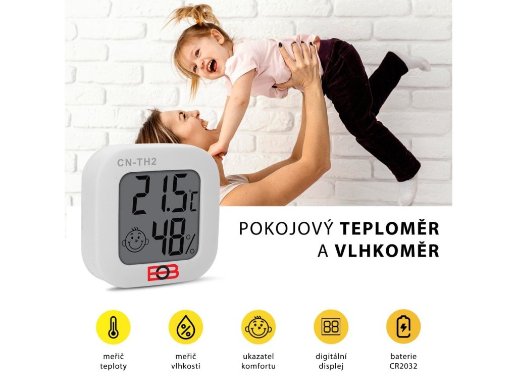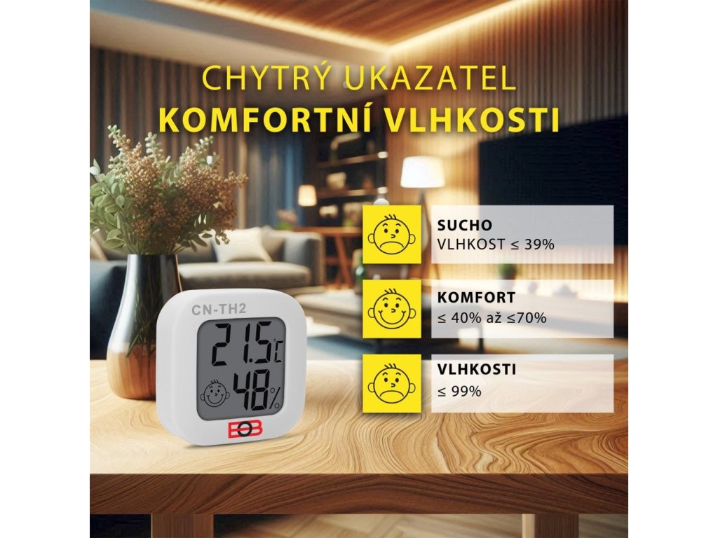Izbový digitálny teplomer/vlhkomer s indikátorom komfortu.Funkcie CN-TH2: