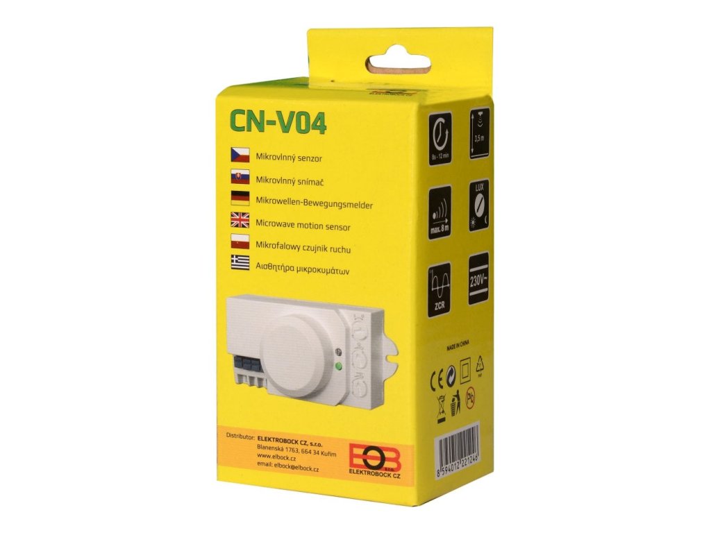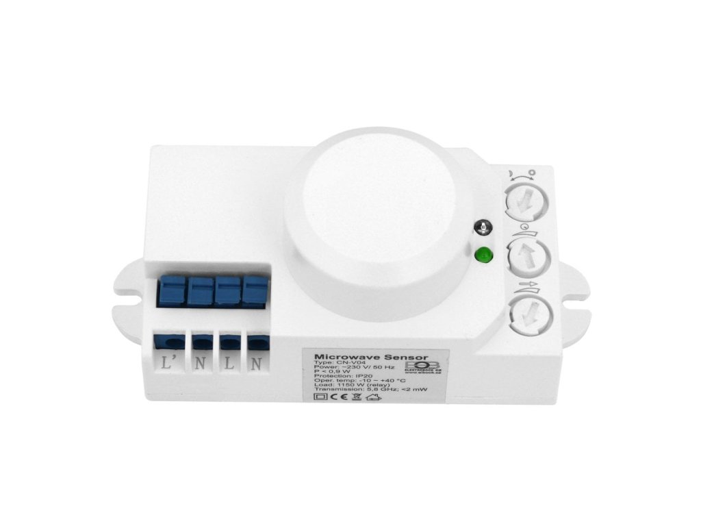 Mikrovlnný snímač na montáž priamo do svietidla alebo do podhľadu.Vlastnosti snímača pohybu CN-V04: