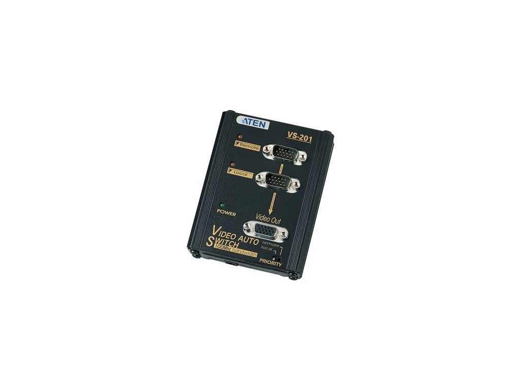 Elektronický video zoskupovač 2 PC - 1 VGA Aten VS-201 - možnosť uprednostniť signál, z ktorého má PC prioritu - LED indikácia stavu - Šírka pásma videa 100 MHz, až 1920 x 1440 85 Hz DDC2, DDC2B - Podpora VGA, XGA. SVGA, UXGA a multisynchrónne monitory - Zosilňuje signál VGA až do vzdialenosti 65 m - Maximálna dĺžka kábla 65 m - Úspora energie pri vypnutom počítači - aktivní prvek vrátane napájacieho adaptéra konektory Vstup 2x15pin HDB 2x samec Výstup 15pin HDB 1x samicaDodatočné parametre