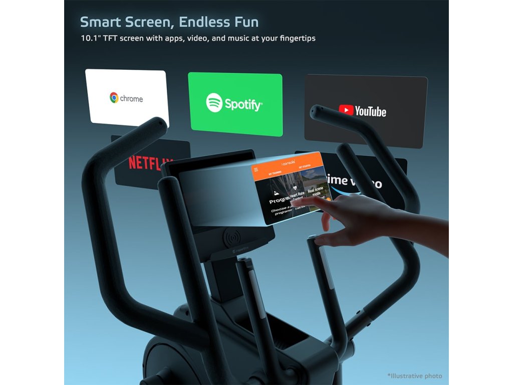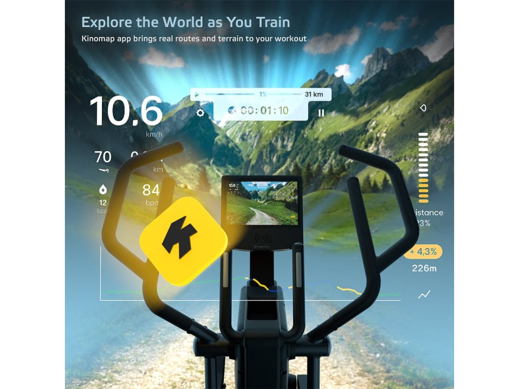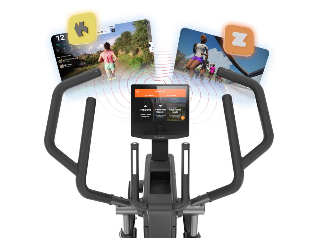 Eliptický trenažer inSPORTline ZenStride 1200 posouvá domácí cvičení na úplně novou úroveň. Díky robustní konstrukci, 12 kg zátěžovému kolu a magnetickému brzdnému systému zvládá i opravdu intenzivní tréninky. Ať už chcete zlepšit kondici, spálit kalorie nebo posílit vytrvalost, tenhle stroj vám dá přesně to, co potřebujete – a ještě něco navíc. Trénink, který vás vtáhne Nastavitelná délka kroku umožní přizpůsobit cvičení každému, bohatá nabídka programů (včetně HRC a WATT režimu) se postará o pestrost a 10,1" dotykový TFT displej vám ukáže všechna důležitá data přehledně a v reálném čase. Díky 16 úrovním odporu a funkci Pauza si trénink nastavíte do posledního detailu – od lehkého kardio zahřátí až po pořádnou výzvu. Technologie, co motivují i baví inSPORTline ZenStride 1200 má již předinstalovanou aplikaci Kinomap, takže se hned po spuštění můžete vydat na tisíce reálných tras doprovázených videem a mít pocit, že trénujete přímo v terénu. Kromě toho lze přes Bluetooth propojit i další aplikace, jako je Zwift nebo FitShow, které nabízejí 3D prostředí, virtuální závody nebo možnost nastavit si vlastní tréninkové plány. A když si budete chtít cvičení zpestřit zábavou, na velkém displeji snadno spustíte Netflix, Spotify, YouTube a další oblíbené aplikace. Díky zrcadlení obrazovky i možnosti připojit sluchátka přes Bluetooth si trénink užijete naplno – a telefon si přitom pohodlně nabijete bez kabelů. Stabilita a komfort bez kompromisů Pevná konstrukce s nosností až 150 kg, transportní kolečka a systém vyrovnání nerovností zajistí stabilitu i pohodlnou manipulaci. Ergonomický rozestup pedálů, nastavitelná délka kroku a ideální výška nášlapů dělají z tréninku příjemný zážitek, ať už jste začátečník nebo pokročilý sportovec. inSPORTline ZenStride 1200 není jen eliptical – je to váš osobní trenér, motivátor i zábavní centrum v jednom. Mobilní aplikace Možnost propojení s mobilními aplikacemi skrze Bluetooth pro trénink a ovládání stroje ze smartphonu nebo tabletu: Kinomap (Android / iOS) tisíce přednastavených reálných tras, ze kterých je přehráváno video snadné promítání díky předinstalované aplikaci nebo pomocí zrcadlení obrazovky při volbě typu stroje zvolte ikonu eliptického trenažeru a jako značku stroje vyberte inSPORTline a jako model Zenstride 1200 aplikace je zpoplatněná Zwift (Android / iOS / Windows / Mac) 3D prostředí a 11 pohlcujících světů, ve kterých se pohybuje váš avatar, přátelé i ostatní sportovci FitShow (Android / iOS) aplikace zdarma interaktivita: stroj automaticky zvyšuje či snižuje odpor dle převýšení na trase v aplikacích vyzkoušejte kompatibilitu aplikací s vaším mobilním zařízením předem pro správnou funkci aplikací mějte povolené a zapnuté WiFi, Bluetooth a GPS (určování polohy) a povolena všechna oprávnění, která aplikace vyžaduje; se strojem se párujte až v aplikaci, nikoliv v nastavení Bluetooth mobilního zařízení inSPORTline není vývojářem zmíněných aplikací a nepřejímá zodpovědnost za případné chyby či nekompatibilitu aplikací (v případě problémů jsme však ochotni pomoct) Klíčové vlastnosti: unikátně stavěný pro intenzivní domácí trénink možnost nastavení délky kroku silné zátěžové kolo s tichým magnetickým brzdným systémem možnost zrcadlení obrazovky bezdrátové nabíjení telefonu možnost propojení sluchátek nebo přehrávání hudby z telefonu pomocí Bluetooth 10,1" dotykový TFT displej široká nabídka přednastavených programů i aplikací funkce Pauza HRC program: stroj automaticky upravuje zátěž tak, aby udržel tepovou frekvenci uživatele v nastaveném rozmezí hodnot WATT program: stroj automaticky upravuje zátěž tak, aby uživatel dosáhl předem nastaveného cílového výkonu počítač zobrazuje: uživatel, čas, rychlost, otáčky za minutu (RPM), vzdálenost, kalorie, tepovou frekvenci, výkon (watt), zátěž předinstalované aplikace: Kinomap, Netflix, Spotify, Chrome, Instagram, Facebook, X (Twitter), Prime Video, Youtube, Amazon Technický popis: hmotnost zátěžového kola 12 kg ovládání zátěže elektronické počet stupňů zátěže 16 rozteč nášlapů (krajů pedálů / středů pedálů) 9 cm / 28 cm délka kroku 41,3 cm / 45,1 cm / 49,5 cm výška nášlapu od země 40 cm v horní pozici celkový počet programů 15 přednastavené programy 12 uživatelské programy 4 HRC program ano WATT program ano manuální program ano snímače tepové frekvence ano stojan na tablet ano držák na lahev ano přijímač hrudního pásu ano, pro nekódovaný analogový 5kHz signál doporučujeme Polar T34 (dosah 4 m, bez možnosti výměny baterie) není kompatibilní hrudními pásy a optickými snímači tepu, které využívají Bluetooth nebo ANT+ hrudní pás součástí balení ne transportní kolečka ano systém vyrovnání nerovností ano celkové rozměry d125 cm x š89,3 cm x v166,9 cm rozměry balení d131 cm x š57,5 cm x v86 cm maximální výška cvičence bez omezení maximální nosnost 150 kg hmotnost 112 kg brzdný systém magnetický příkon 36 W zdroj napájení DC 12V, 3A kategorie HB (dle EN20957) použití domácíDodatočné parametre