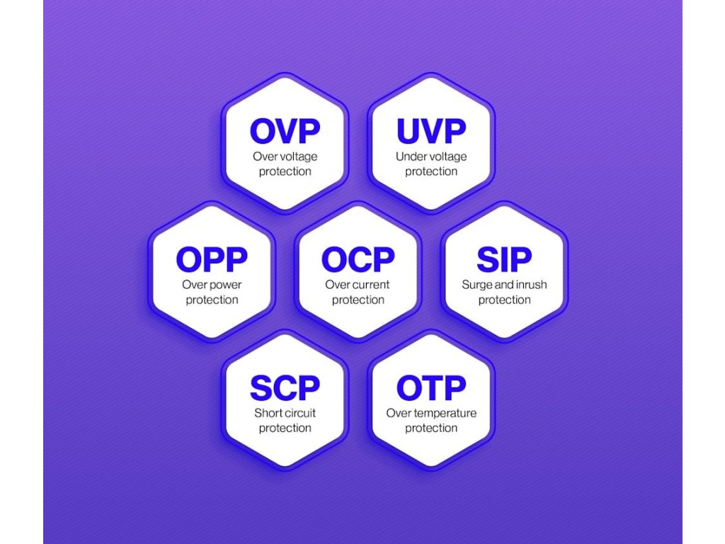 Kompletná sada ochranných prvkov OVP, UVP, OCP, SCP, OPP, SIP a OTP