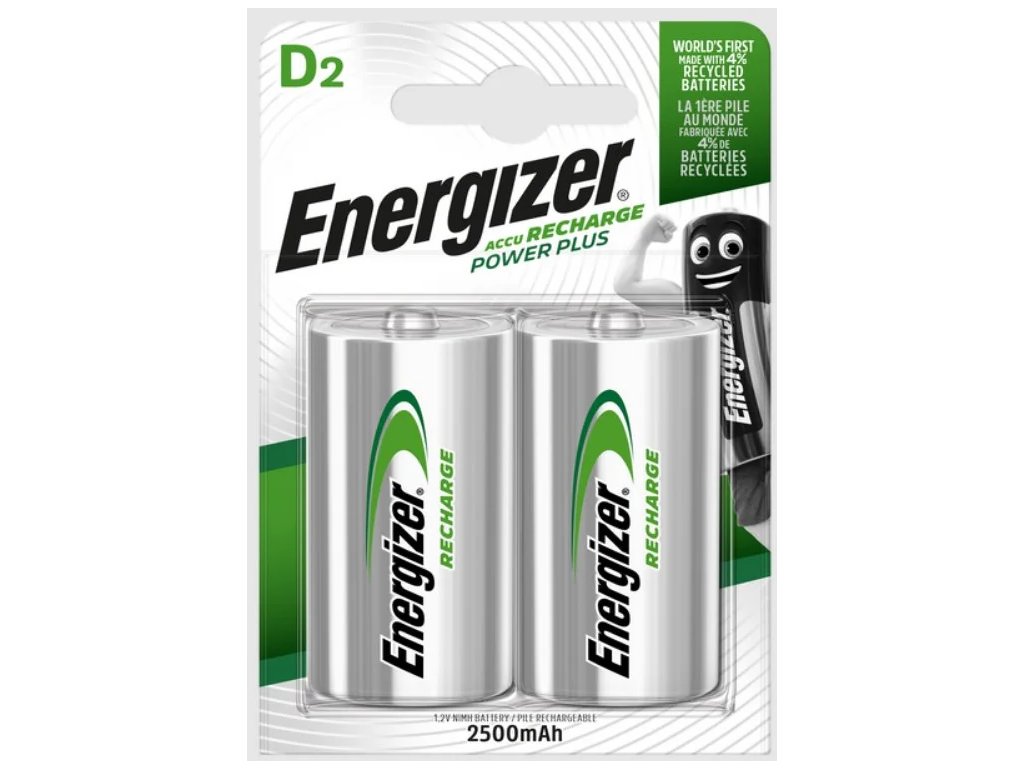 Nabíjacia batéria D/HR20 - 2500 mAh POWER PLUS Energizer Špecifické vlastnosti: Typ: dobíjacia NiMH batéria Alternatívne označenie typu batérie: HR20, D, R20 kapacita: 2 500 mAh chemická ochrana proti nadmernému vybitiu0 podľa údajov z prieskumu trhu. Odporúčané pre: Hračky detektory plašiča hier a škodcov telekomunikačné zariadeniaDodatočné parametre