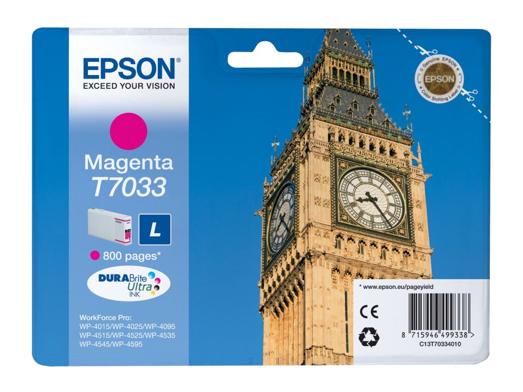 Epson T7033 L Magenta, až 800 strán, pre série WP4000/4500 (WP-4015,WP-4025,WP-4515,WP-4525,WP-4535,WP-4545) - originálne C13T703
