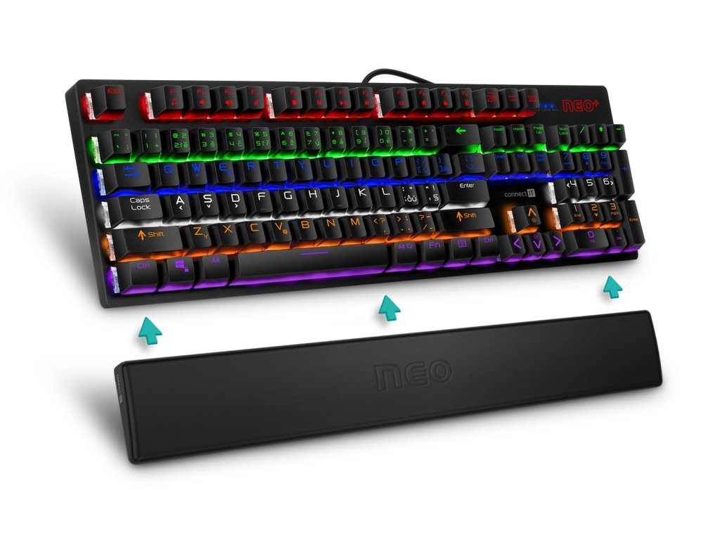 Opierka na zápästie NEO --- Ergonomická podložka pod klávesnicu NEO --- S kvalitnou a štýlovou podložkou CONNECT IT NEO môžete hrať a pracovať dlhšie bez bolesti zápästia a rúk. Sametovo mäkký povrch z PU kože, z ktorej je podložka vyrobená, znižuje únavu zápästia a ruky a je ideálny nielen na hranie hier, ale aj na dlhodobú prácu doma av kancelárii. --- Dĺžka 43,5 cm pre štandardné veľkosti klávesnice Znižuje únavu zápästia a ruky Ideálne na dlhodobú prácu doma aj v kancelárii Sametovo mäkký povrch z PU kože Mäkké ergonomické polstrovanie Pevný vystužený rám a základňa Obdĺžnikový ergonomický tvar 6 x 7 x 4 Rozmery šmykových gumových nožičiek 20 mmDodatočné parametre