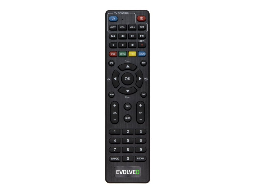 EVOLVEO Alpha T2, HD DVB-T2 H.265/HEVC rekordér - HD DVB-T2 prijímač/rekordér novej generácie s podporou H.265/HEVC - programovateľné diaľkové ovládanie - Slovenský elektronický programový sprievodca EPG ________________________________________________________________________________________________________________ Multimediálny DVB-T2 T2 prijímač multimediálny HD DVB-T2 rekordér novej generácie s podporou H.265/HEVC, ktorý dokáže nahrávať vaše obľúbené programy a prehrávať multimediálne súbory aj z USB flash disku alebo externého pevného disku. Inteligentné diaľkové ovládanie Jednou z hlavných nepríjemností pri používaní set top boxu je potreba dvoch diaľkových ovládačov. Televízor musíte zapnúť pôvodným diaľkovým ovládačom a potom druhým ovládačom ovládať set top box. Aby sme vám uľahčili a zjednodušili používanie nášho set top boxu, vybavili sme ho inteligentným diaľkovým ovládaním, ktoré umožňuje ovládať aj väčšinu televíznych zariadení. V praxi to funguje tak, že náš inteligentný diaľkový ovládač naučíte zapínať a vypínať televízor, ovládať jeho hlasitosť a vstupy. Vďaka tomu nebudete musieť na sledovanie televízie používať pôvodný diaľkový ovládač. Budete používať iba jeden diaľkový ovládač, ktorý dostanete spolu so zariadením. Multimediálne zariadenia Zariadenie dokáže prehrávať väčšinu multimediálnych súborov vo formátoch MKV, DiVX, AVI, MPG, MP3, MP4, MOV, JPG alebo JPEG z externého disku alebo jednotky USB flash. Televízny program možno tiež nahrávať v digitálnej kvalite na externý disk. EVOLVEO Alpha T2 má plnú podporu slovenského teletextu a elektronického programového sprievodcu EPG. Podporuje funkciu TimeShift, obsahuje prehľadné slovenské menu, možnosť naplánovať nahrávanie v čase vašej neprítomnosti a jeho spotreba energie v pohotovostnom režime je prakticky nulová, menej ako 1 W. Jeho používanie je veľmi jednoduché a vďaka veľkým tlačidlám je vhodný najmä pre starších ľudí. Zariadenie umožňuje súčasné používanie inteligentného aj seniorského diaľkového ovládania. ŠPECIFIKÁCIA: - DVB-T2, tuner kompatibilný s H.265/HEVC - spätná kompatibilita s MPEG-4 HD/MPEG-4 SD/AVC/H.264 HP@L4, MPEG-2 - podpora časového záznamu, manuálne zadanie času spustenia a zastavenia - automatické vypnutie do pohotovostného režimu režim obrazu 4:3PS/4:3LB/16:9/Auto - rozlíšenie 576i, 576p, 720p, 1080i, 1080p - Podpora súborov FAT32/NTFS - Jednoduchá automatická inštalácia a ladenie programov alebo ladenie podľa kanálu alebo frekvencie - Manuálne triedenie programov - prehľad - Podpora Dolby Digital Plus - Podpora MKV/DivX/AVI/MOV/MPEG/MP3/MP4/WMA/JPG/JPEG - podpora zobrazovania interných a externých slovenských titulkov DivX/MKV - automatická prezentácia fotografií s prechodovými efektmi - podpora vytvárania zoznamov skladieb, hudby alebo fotografií - USB po aktualizácii - Prehľadný displej LCD - Rozmery D 135 x Š 70 x V 28 mm - hmotnosť 118 g PODROBNOSTI: - HDMI - SCART - digitálny koaxiálny zvukový výstup - Port USB (USB 2.0) - Vstup pre anténu OBSAH BALENIA: - HD DVB-T2 H265 príručkaDodatočné parametre