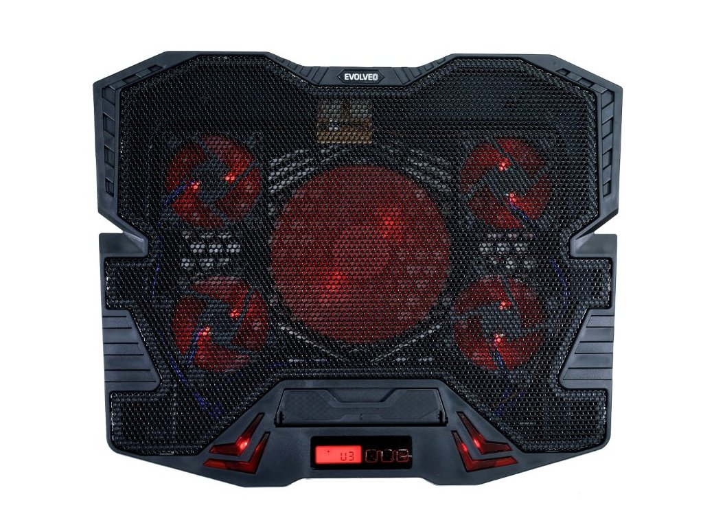 Popis produktu Herný polohovateľný chladiaci podstavec pre notebooky veľkosti 11-15.6". Regulácia rýchlosti otáčok ventilátora, displej s ukazovateľom rýchlosti ventilátorov. Špecifikácia: • Rozmery: 365*297*30 mm • Ventilátory: 4 x 60 mm, 1 x 120 mm, modrá LED • Materiál: plast a kov • Nastav 5V • Rýchlosť ventilátora: 1000 - 2500 ± 10% RPM • Regulácia rýchlosti otáčok ventilátora s možnosťou ich vypnutia • Displej s ukazovateľom rýchlosti otáčok ventilátora • Kompatibilný s notebookmi 11-15.6" • Hlučnosť: 13dBA • USB 0 • USB 0. 2 x 2 . Výkon: 1.8W • Hmotnosť: 800 gDodatočné parametre
