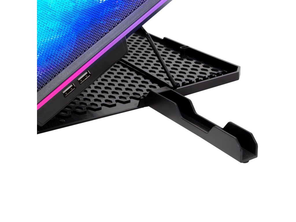 Vnútri tohto stojana sa nachádza dobre zohratý tím aktívneho chladenia PentaFan, ktorý kombinuje jeden veľký (125 mm) a štyri menšie (70 mm) ventilátory. Spoločne účinne odvádzajú teplo z povrchu notebooku, čím znižujú zahrievanie jeho vnútorných komponentov, a tým tiež predlžujú čas, počas ktorého môžete hrať alebo pracovať bez nepríjemného throttlingu (zníženie výkonu v dôsledku vysokej teploty).