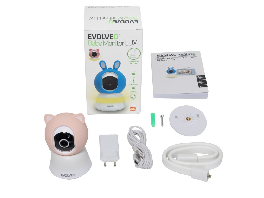 EVOLVEO Baby Monitor LUX- Inteligentná 360° video pestúnka s nočným videním, detekciou plaču a pohybu, ružová