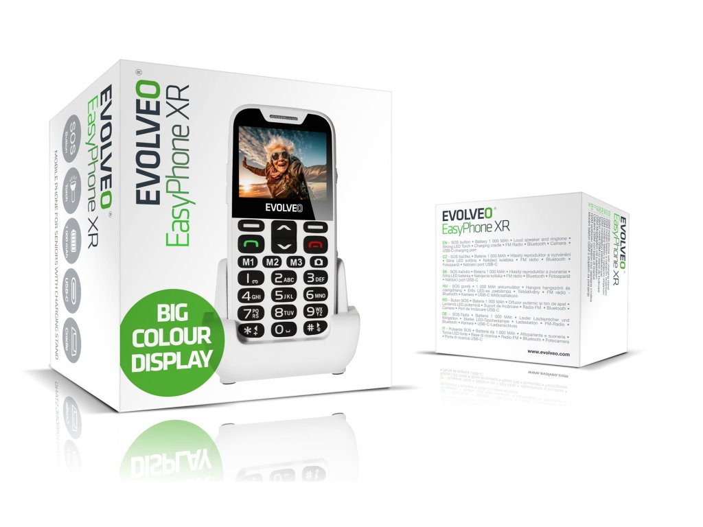- Prehľadné a jednoduché menu - Jednoduché intuitívne ovládanie - Barevný 2,3" TFT displej - Nabíjací konektor USB-C (typ C) - Vyhradené tlačidlá pre 3 kontakty a fotoaparát - Samostatné tlačidlá na jednoduché ovládanie - FM rádio so zabudovanou anténou - Hlasitý reproduktor - Výkonná baterka - Tlačidlo SOS Nabíjacia kolíska na jednoduché nabíjanie batérie Jednoduché používanie a farebný displej Ovládanie telefónu EVOLVEO EasyPhone XR bolo čo najviac zjednodušené, aby vyhovovalo potrebám seniorov a detí. Jednotlivé tlačidlá klávesnice sú oddelené, čo uľahčuje písanie textových správ a zadávanie telefónnych čísel. Pre ešte väčšie pohodlie pri používaní telefónu sú na prednej strane telefónu 3 vyhradené tlačidlá, ktoré umožňujú rýchly prístup k dôležitým funkciám, napríklad k fotoaparátu. SOS volanie a nouzová správa SMS Na zadnej strane telefónu sa nachádza výrazné tlačidlo SOS, ktoré po stlačení automaticky vytočí predvolené čísla a odošle na ne núdzovú správu, čím užívateľom poskytne rýchlu a spolehlivú cestu k pomoci v núdzi. Nabíjací stojan a výdrž batérie Telefón sa dodáva s praktickým nabíjacím stojanom, do ktorého stačí telefón zasunúť a batéria sa začne automaticky nabíjať, čo uľahčuje a spríjemňuje každodenné používanie. Vďaka výdrži batérie až 8 dní je telefón vždy pripravený na použitie bez toho, aby používateľ musel často hľadať nabíjaciu zásuvku. Na farebnom displeji tak ľahko rozpoznáte svojich blízkych a ďalšie dôležité kontakty. Vďaka tejto funkcii môžete mať v telefóne kompletný prehľad o svojich dôležitých osobách a ich telefónnych čísloch, čo prispieva k pohodlnej a efektívnej komunikácii. Multifunkčnosť a pohodlné používanie Telefón EVOLVEO EasyPhone XR ponúka širokú škálu funkcií, ktoré zvyšujú komfort používania. Vďaka zabudovanému FM rádiu s integrovanou anténou si môžete vychutnať svoje obľúbené stanice bez potreby pripojenia slúchadiel. Praktická baterka sa ľahko používa prostredníctvom vyhradeného tlačidla a umožňuje svietiť aj pri zamknutej obrazovke. Pripojenie Bluetooth hands-free dodáva ďalšiu úroveň pohodlia, najmä pri používaní telefónu v aute. Vďaka podpore pamäťových kariet microSDHC môžete rozšíriť úložný priestor telefónu a vychutnať si svoje obľúbené hudobné súbory kedykoľvek a kdekoľvek. Tieto funkcie spoločne zvyšujú pohodlie pri používaní telefónu a poskytujú užívateľom široké možnosti využitia. ŠPECIFIKÁCIA: - Mobilný telefón s veľkými tlačidlami vhodný pre seniorov alebo deti - Jednoduché ovládanie a ergonomický dizajn - Veľký farebný 2,3" TFT displej - Nabíjací port USB-C (typ C) - 0,3-megapixelový fotoaparát - Kapacita na uloženie kontaktov: 250 - Kapacita pre SMS správy: vytáčanie blízkych osôb - Počet predvolieb pre fotografické kontakty: 250 - Počet predvolieb rýchlej voľby: 9 - SOS tlačidlo s výrazným farebným odlišením pre SOS volania v prípade núdze - Počet predvolieb SOS kontaktov: 6 - Nezávislé FM rádio funkčné aj pre zabudovaný reproduktor - Automatické ladenie rádia (M1-M3), fotoaparát a zmenu profilu užívateľa - Hlasitý výkonný reproduktor pre FM rádio a zvonenie - Počet zvonení: 4 + vlastné - Nabíjacia kolíska na jednoduché nabíjanie - Užívateľsky vymeniteľná 1000 mAh Li-Ion batéria (súčasťou dodávky) - Až 8 dní pohotovostného režimu - Čas nabíjania. 240 px - veľké oddelené tlačidlá klávesnice pre jednoduché ovládanie - biele podsvietenie tlačidiel s možnosťou úplného vypnutia - výkonná baterka s možnosťou rozsvietenia aj pri zamknutej obrazovke - posuvné tlačidlo baterky - tlačidlá ovládania hlasitosti - indikacia LED diód indikácia signalizuje zmeškaný hovor alebo neprečítanú správu - Pokrytie pásma GSM 850/900/1 800/1 900 MHz - Podpora správ SMS a MMS - Podpora SIM Toolkit - Bluetooth verzia 3.0 - Štyri užívateľské profily 1) Všeobecný 2) Tichý - 3) Stretnutie 4) karta (Mini SIM) - Prehliadač obrázkov (jpg, bmp, gif, jpeg) - Prehrávač hudby (mp3, wav, amr, mid, imi) - Digitálny hlasový záznamník/diktafón (amr) - Automatické nastavenie presného času podľa operátora - Kalendár, budík, kalkulačka, správca súborov - GB) - 3,5 mm vstup pre sluchátka - Jazyky užívateľskej príručky: CZ, SK, EN, HU, RO, SL, BG - Jazyky firmvéru: CZ, SK, EN, HU, RO, DE, IT, BG, GR, HR, SL, PL, ES - Dĺžka kábla nabíjacieho adaptéra: 1 j× 58 × 14 mm - Hmotnosť vrátane batérie: 89 g OBSAH BALENIA: - BATÉRIE S BATÉRIOU: - Mobilný telefón - Batérie - Nabíjacia kolíska - Návod na použitie (SK, SK, EN, HU, RO, SL, BG) ĎALŠIE PRÍSLUŠENSTVO: - EVOLVE XD, XR (PartNo: EP-600BAT) - EVOLVEO univerzálna nabíjačka USB-C pre mobilné telefóny, čierna (PartNo CHARGER-USBC2) BAREVNOSŤ: - EVOLVEO EasyPhone XR, mobilný telefón pre seniorov s nabíjacím stojanom, černý (PartNo: E-VE XR, mobilný telefón pre seniorov s nabíjacím stojanom, biely (PartNo: EP-601-XR-WH) - EVOLVEO EasyPhone XR, mobilný telefón pre seniorov s nabíjacím stojanom, červený (PartNo: EP-601-XR-RD) - EVOLVEO EasyPhone , (PartNo: EP-601-XR-BL) - EVOLVEO EasyPhone XR, mobilný telefón pre seniorov s nabíjacím stojanom, oranžový (PartNo: EP-601-XR-OR) - EVOLVEO EasyPhone XR, mobilný telefón pre seniorov s nabíjacím stojanom, ružový PODPORA A SERVIS: podpora@evolveo.czDodatočné parametre