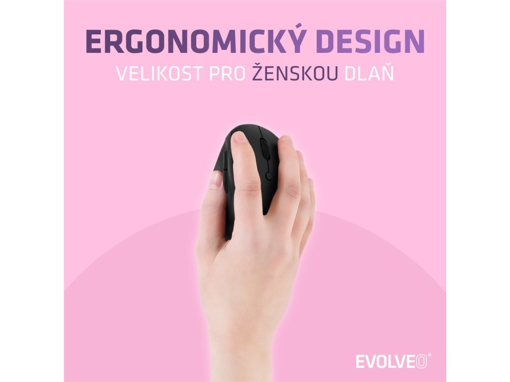 EVOLVEO LadyErgo, tichá vertikálna ergonomická myš, 2,4 GHz, čierna