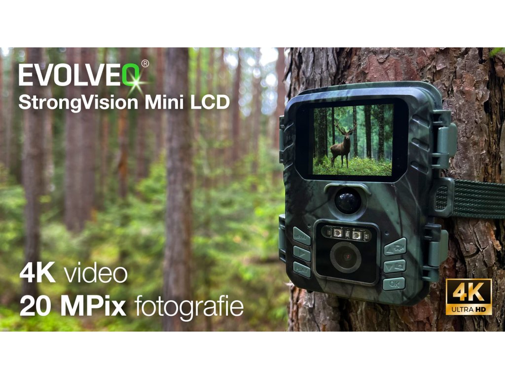 EVOLVEO StrongVision Mini LCD, fotopasca/časosberná kamera - Vysokokvalitné snímky s rozlišením až 24 Mp - Kvalita videa 4K - Nočné videnie do 15 metrov. - Odolnosť voči všetkým poveternostným vplyvom IP65. - Rýchla odozva (0,5 sekundy). - Jednoduché používanie 2,0" LCD displeja - Podpora až 256 GB karty SD. ________________________________________________________________________________________________________________ Ideálne riešenie na monitorovanie prírody a majetku EVOLVEO StrongVision MINI LCD je špičková fotopasca a časosberná kamera určená na rôzne účely, od monitorovania prírody až po zabezpečenie majetku. ostré a detailné fotografie a videa v kvalite 4K. Vďaka neviditeľnému infračervenému prísvitu s dosahom 15 metrov môžete získať kvalitné nočné zábery bez rušenia monitorovaného objektu. Pokročilé funkcie a jednoduché ovládanie EVOLVEO StrongVision MINI LCD je vybavená snímačom pohybu s rýchlou odozvou 0,8 sekundy, vďaka čomu žiadny pohyb nezostane nepovšimnutý. Zariadenie podporuje časozberné snímanie, takže je ideálne na dlhodobé monitorovanie stavebných alebo prírodných procesov. Vďaka slotu na kartu microSD môžete uložiť až 256 GB dať, čo zaručuje dostatočnú kapacitu na dlhodobé monitorovanie. Fotopasca je tiež odolná voči poveternostným vplyvom, takže môže spolehlivo fungovať v rôznych poveternostných podmienkach. Flexibilné používanie a dlhá výdrž Táto fotopasca je vďaka svojej flexibilite a dlhej výdrži batérie ideálna na rôzne aplikácie. Pomocou dodaného montážneho príslušenstva ju môžete jednoducho nainštalovať na stromy, ploty alebo iné vhodné miesta. Dlhá výdrž batérie znamená, že zariadenie môže fungovať celé mesiace na jedno nabitie, čím sa minimalizuje potreba častej údržby. To je výhodné najmä pri monitorovaní vzdialených oblastí, kde je obmedzený prístup. Bezpečné a diskrétne monitorovanie Neviditeľné infračervené osvetlenie a tichý prevádzka fotopasce EVOLVEO StrongVision MINI LCD zabezpečujú, že zariadenie zostane nepovšimnuté, takže je ideálne na monitorovanie zveri alebo bezpečnostné účely. Kamera je navrhnutá tak, aby bola nenápadná, čím sa minimalizuje riziko odhalenia alebo poškodenia. Vďaka robustnej konštrukcii je navyše zariadenie odolné voči poveternostným vplyvom a mechanickému poškodeniu. Komplexné balenie na okamžité použitie Kamera EVOLVEO StrongVision MINI LCD sa dodáva ako kompletná súprava, ktorá obsahuje fotopascu, montážny popruh, čítačku kariet USB SD a podrobnú príručku. Tento systém je pripravený na okamžité použitie a ponúka všetko, čo potrebujete na efektívne monitorovanie. Vďaka pokročilým funkciám, jednoduchej inštalácii a spolehlivému výkonu je systém EVOLVEO StrongVision MINI LCD vynikajúcou investíciou pre každého, kto potrebuje kvalitné a efektívne monitorovacie riešenie. Tento výrobok je ideálny pre poľovníkov, ochranárov, poľnohospodárov a majiteľov nehnuteľnosti, ktorí hľadajú spoľahlivý spôsob monitorovania svojho majetku a okolia. Či už monitorujete voľne žijúcu zver, alebo chcete mať prehľad o tom, čo sa deje na vašom pozemku, EVOLVEO StrongVision MINI LCD je tou správnou voľbou. ŠPECIFIKÁCIA: - Snímač obrazu: 5MP farebný CMOS - Pamäť: karta Micro SD s kapacitou až 256 GB - Objektív: F=3,1; FOV = 100 ° - Veľkosť: 105 mm 90 mm 50 mm - Displej: 2,0" LCD TFT - Režimy: Foto/Video/Foto&Video/Time Lapse - Dĺžka videa: 3s-10min - Časozber: 30s-24h - Rozsah detekcie PIR: 60 stupňov - 60 stupňov výkonných 850nm LED - Dosah PIR: 15 m - Nastavenie PIR: Vysoké/Normálne/Nízke - Cyklické nahrávanie: Áno - Rýchlosť spúšťa: 0,8 sekundy - Rozlíšenie fotografií: 24/20/16/12/5/3/1MP - Rozlíšenie videa: 3840x2160P/2688x1520P/1920x1080P/... - Formát súborov JPEG/AVI. - Dátum a čas na snímke: Áno . Rozhranie: typ C; slot na kartu Micro SD - 6 V - Zpôsob montáže: opasok, statív - Provozná teplota: -20 ~ 60? Fotopasca - Používateľská príručka - Čítačka kariet MicroSD - Popruh na pripevnenie ĎALŠIE PRÍSLUŠENSTVO: - EVOLVEO StrongVision SP1, Solárny panel pre EVOLVEO StrongVision (PartNo: CAM-SP1) - Kabel EVOLVEO StrongVision na pripojenie externého EVOLVEO StrongVision H1, kovový držiak pre fotopasce so závitom (PartNo: CAM-H1) - EVOLVEO StrongVision adaptér 6V2A (PartNo: CAM-ADA6)Dodatočné parametre