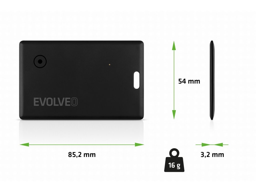 Lokátor Bluetooth EVOLVEO TrackCard je univerzálnym strážcom všetkého dôležitého vo vašom živote. Pripevnite ho na kľúče od auta, kabelku alebo kufor a budete mať pokoj. Rodičia ho môžu používať na monitorovanie pohybu svojich detí, zatiaľ čo milovníci zvierat ho môžu používať na sledovanie svojich psov alebo mačiek. A ak sa obávate krádeže, karta TrackCard je skvelým spôsobom, ako mať prehľad o svojom aute alebo bicykli.