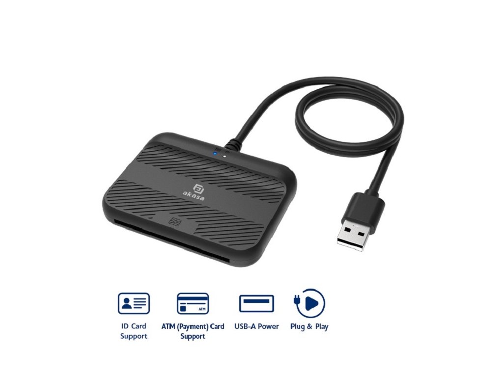 Externá čítačka čipových kariet a dokladov AKASA - čierna