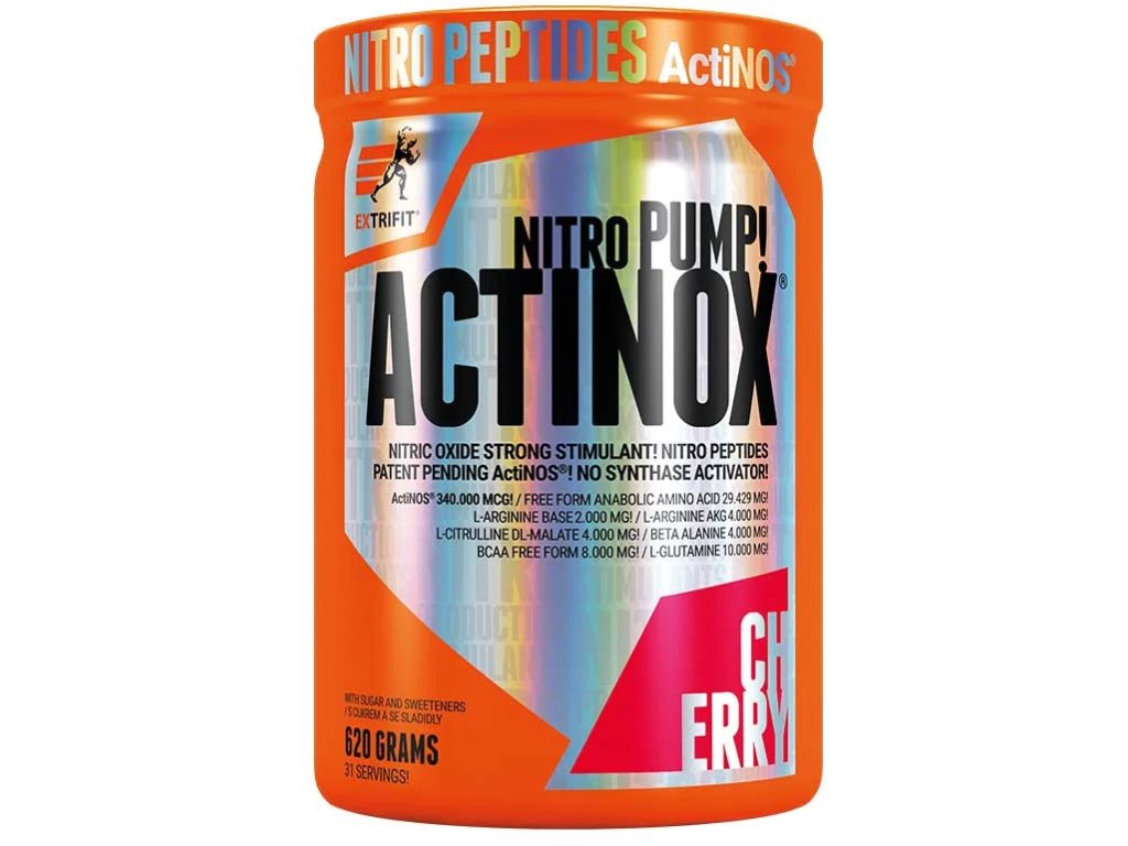 Úplná revolúcia v oblasti "rezancov": výrobok, ktorý funguje celý deň - ACTINOX®! ACTINOX® obsahuje tri receptúry (MATRIX) s 35 340 mg účinných látok v maximálnej dennej dávke. Je jedinečný svojim vysokým obsahom patentovanej zložky CFM Nitro® P - hydrolyzovaného syrovátkového izolátu obohaceného o prémiové, starostlivo vybrané peptidy. Výrobca pôvodného ActiNOS® vyvinul novú, oveľa koncentrovanejšiu formu, ktorá je veľmi účinná aj pri veľmi nízkych dávkach! Pre komplexný účinok obsahuje ACTINOX® aj enormné množstvo glutamínu, BCAA, citrulínu, beta-alanínu a arginínu. Ako zdroj energie využíva značkovú izomaltulózu Palatinose™. Výrobok neobsahuje stimulanty, preto je vhodný aj na užívanie večer av dňoch tréningového volna. Pozor, ACTINOX® nie je "nakopávač"! Prečítajte si dôležité upozornenie na konci textu. Milan Oboril (juniorský mister sveta IFBB v klasickej kulturistike). A napumpovanie? Wow!" Vojtech Koritenský (víťaz Arnold Classic). Beriem ho len počas voľných dní, ale regenerácia je vďaka nemu dokonalá! Najdôležitejšie živiny sa stále dostávajú do svalov a naozaj to cítiť!" Dokonalý vzorec ACTINOX® 1) EXTRÉMNE NAPUMPOVANIE 4! MATRIX Celkovo 10 340 mg pumpovacích zložiek, na čele s unikátnym patentovaným CFM Nitro® P. Obsah tejto prémiovej zložky v ACTINOX® je absolútne najvyšší v porovnaní s ostatnými produktmi na trhu! Jej vysoko cenené účinky dopĺňajú známe "aktivátory NO": 4 000 mg arginínu AKG, 4 000 mg citrulínu DL-malátu a 2 000 mg čistého arginínu. Vďaka tomuto zloženiu budete môcť konečne trénovať ako profesionál! Maximálny účinok pre tréningovú tvrdosť a intenzitu! 2) ANABOLICKÉ AMINOKYSELINY 4! MATRIX Vedeli ste, že vetvené aminokyseliny (BCAA) tvoria 35 % všetkých esenciálnych aminokyselín v ľudskom svale? A že 80% glutamínu v tele sa nachádza vo svalovom tkanive? Preto v najvyššej dennej dávke ACTINOX® nájdete neuveriteľných 9 000 mg týchto dôležitých aminokyselín! Porovnajte sa s ostatnými "NOS" na trhu a zistíte, že obsah aminokyselín v ACTINOXe® je absolútne bezkonkurenčný! BCAA sú navyše v optimálnom pomere 2:1:1, ktorý sa nachádza aj v živočíšnych bielkovinách. Tie sú považované za najkvalitnejšie z hľadiska podpory rastu a ochrany svalov. 3) ENERGETICKÝ MATRIX Kombinuje 4 000 mg beta-alanínu a 3 000 mg revolučného sacharidu izomaltulózy (Palatinose™), ktorý spoľahlivým spôsobom zabezpečuje prísun energie do svalov. Palatinóza, inovatívny sacharid s nízkym glykemickým indexom, poskytuje stabilnú a dlhotrvajúcu energiu. Beta-alanín je špeciálna aminokyselina, z ktorej sa vo svaloch tvorí látka nazývaná karnozín. Zvýšené zásoby karnozínu pomáhajú oddialiť nástup svalovej únavy, čo vám umožní trénovať dlhšie a intenzívnejšie! K účinnému zvýšeniu zásob karnozínu však dôjde len vtedy, ak budete ACTINOX® užívať pravidelne každý deň po dobu najmenej dvoch mesiacov. Počas voľných dní ENERGY MATRIX podporuje regeneráciu svalov a pripravuje vás na ďalší náročný tréning. Takto geniálne to má ACTINOX® vyriešené! ACTINOX® - naplňte svoje svaly všetkým, čo potrebujete! Jeden z najdrahších, ale najúčinnejších prémiových "NOS" Jedinečná zložka CFM Nitro® P (ActiNOS®) v najvyššom množstve na trhu! Vyvážená směs NO stimulantov: arginín AKG, arginín base a vysoko účinný citrulín 80% každej dávky tvoria aminokyseliny! 10 gramov glutamínu 8 gramov BCAA 4 gramy beta-alanínu pre maximálnu svalovú vytrvalosť Revolučný sacharid s nízkym glykemickým indexom Palatinose (izomaltulóza) v najvyššej dennej dávke (2 odmerky) Dôležité upozornenie: Neexistuje žiadny "nakopávací" efekt. Nezamieňajte si stimuláciu tvorby NO (prietoku krvi) s pocitom eufórie a vzrušenia! Tieto energizujúce vlastnosti nie sú spôsobené látkami, ktoré produkujú oxid dusnatý (NO), ale sú spôsobené pridanými stimulantmi, ako je kofeín, taurín alebo extrakt zo zeleného čaju. Toto je dôležité si zapamätať. Oxid dusnatý pumpuje! Oxid dusnatý "nepumpuje"! Je to doplnok stravy. Dávkovanie: výkonnostní a profesionálni športovci 2 odmerky (40 g) Užívajte 15-20 minút pred tréningom v netréningovom dni užívajte 1 odmerku (20 g) 1-2 krát denne medzi jedlami na každú odmerku (20 g) použite 150 ml vody. všetky príchute L-glutamín, L-leucín (emulgátor: slnečnicový lecitín 0,8 %), beta-alanín, L-citrulín DL-malát 2:1, L-arginín alfa-ketoglutarát 2:1, Palatinose™ (izomaltulóza+), regulátor-kyslová, regulátor kyslová L-izoleucín, prírodné farbivo: (pre citrónovú a pomerančovú príchuť) / červená repa (pre višňovú príchuť), CFM Nitro® P (peptidy ActiNOS®), aróma, sladidlá: sukralóza a glykozidy steviolu prírodného pôvodu (z rastliny stévia), protihrý 100 g 1 odmerka (20 g) 2 odmerky (40 g) Energetická hodnota 1 280 kJ / 305 kcal 256 kJ / 61 kcal 512 kJ / 122 kcal Tuk 0,5 g 0 g 0 g - z toho nasýtené mastné kyseliny 0 g 0 g 0 g 0 g Sacharidy 10 g 2,0 g 4,0 g - z toho cukry 8,3 g 1,7 g 3,3 g Vláknina 0,8 g 0,2 g 0,3 g Bielkoviny 0,8 g < 0,5 g < 0,5 g Sol 0 účinných látok: 1 odmerka (20 g) 2 odmerky (40 g) EXTRÉMNE NAPUMPOVANIE 4! MATRIX 5 170 mg 10 340 mg CFM Nitro® P (ActiNOS® peptidy) 170 mg 340 mg L-arginín AKG 2 000 mg 4 000 mg - z toho L-arginín 1 250 mg 2 500 mg L-arginín 0 L-citrulín DL-malát 2 000 mg 4 000 mg - z toho L-citrulín 1 320 mg 2 640 mg ANABOLICKEJ AMINOKYSELINY 4! MATRIX 9 000 mg 18 000 mg L-glutamín 5 000 mg 10 000 mg L-leucín 2 000 mg 4 000 mg L-izoleucín 1 000 mg 2 000 mg L-Valín 1 000 mg 2 000 mg 000 mg Beta-alanín 2 000 mg 4 000 mg Palatinose™ (izomaltulóza) 1 500 mg 3 000 mg obsah voľných aminokyselínDodatočné parametre