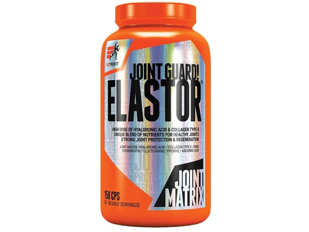 Extrémne silný prostriedok pre zaťažované a namáhané kĺby, až 10x silnejšie ako iné kĺbové produkty. Elastor je unikátny produkt určený pre vaše kĺby. Je určený prednostne pre intenzívne cvičiacich športovcov, ktorí potrebujú zaistiť dostatočnú ochranu svojim zaťažovaným kĺbom a súčasne je mimoriadne silným produktom aj pre bežnú populáciu. Elastor obsahuje najvyššie množstvo chondroprotektív na súčasnom trhu! Obsah ochranných kĺbových látok v maximálnej dennej dávke 5 kapsúl: kyselina hyalurónová: 200 mg kolagén typu II: 200 mg chondroitín sulfát: 1500 mg glukosamín sulfát: 1500 mg MSM: 1500 mg vitamín C: 200 mg piasín Je mimoriadne silný. Obsahuje vysoké dávky chondroprotektív, obzvlášť kyseliny hyalurónovej a kolagénu typu II. Je mimoriadne komplexný. Obsahuje všetky dôležité chondroprotektíva v účinných dávkach - chondroitín sulfát, MSM, glukosamín sulfát, hydrolyzovaný kolagén typu II, vitamín C, kyselinu hyalurónovú a extrakt z čierneho korenia - piperín. Obsahuje hydrolyzovaný kurací kolagén typu II. Tento kolagén má najpriaznivejšie zloženie, čo sa účinku na kĺby týka! A navyše na etikete produktu nájdete detailne obsah účinných látok v tomto kolagéne. Produkt je vo forme kapsúl s výbornou stráviteľnosťou a vstrebateľnosťou! Potlač Extrifit na kapsuliach Vám dáva záruku, že firma je výrobcom kapsúl a garantom ich kvality. Produkt neobsahuje ani cukor, ani tuk a je teda vhodný aj do redukčných programov a pri rysovaní svalov. Elastor neobsahuje žiadne zbytočné a nepreverené látky. Balenie Vám vydrží 30 - 50 dní! Ide o doplnok stravy. Dávkovanie: užívajte 3 kapsule denne pokročilí športovci a osoby s vyššou telesnou hmotnosťou 4–5 kapsúl denne dennú dávku môžete rozložiť na 2–3 časti zapite dostatočným množstvom tekutiny Hodnoty: Obsah účinných látok: 3 kapsule 4 kapsule 5 kapsúl Chondroitín sulfát 900 mg 1 sulfát 900 mg 1 200 mg 1 500 mg MSM 900 mg 1 200 mg 1 500 mg Kolagén typu II 120 mg 160 mg 200 mg Kyselina hyalurónová 120 mg 160 mg 200 mg Vitamín C 120 mg RHP*) 200 mg (250 % RHP*) Extrakt z čierneho korenia 12,6 mg 16,8 mg 21 mg - z toho piperín 95 % 12 mg 16 mg 20 mg * RHP = referenčná hodnota príjmu Celková hmotnosť produktu (vrátane obalu) vg: 270 Celková hmotnosť obsahu v 1 sulfát, D-glukosamín sulfát 2KCl, metylsulfónylmetán (MSM), hydrolyzovaný kurací kolagén typu II, hyaluronát sodný, kys. askorbová (vitamín C), extrakt z čierneho korenia - prídavné látky: kapsule (želatina, farbivo: oxid látka: horečnaté soli mastných kyselín Upozornenie: Doplnok stravy. Skladujte v suchu pri teplote do 25 ° C, starostlivo uzavreté, chráňte pred priamym slnečným žiarením a pred mrazom. Po otvorení spotrebujte do 6 mesiacov. Uchovávajte mimo dosahu detí. Prípravok nie je určený pre deti, tehotné a dojčiace ženy. Výrobok nie je určený ako náhrada pestrej stravy. Neprekračujte dennú odporúčanú dávku. Výrobca neručí za škody vzniknuté nevhodným použitím alebo skladovaním. Spotrebujte do dátumu uvedeného na obale. Upozornenie pre alergikov: výrobok obsahuje surovinu pochádzajúcu z kôrovcov.Dodatočné parametre