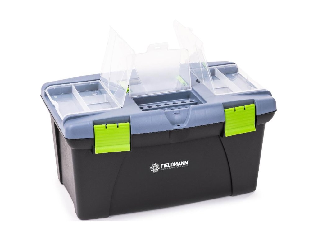 Usporiadajte si náradie pomocou praktického úložného boxu FDN 4120. Horná časť boxu obsahuje priehľadný organizér, ktorý umožňuje rýchly prístup k drobným predmetom, ako sú skrutky, bity alebo hmoždinky. Ďalší vyberateľný vnútorný organizér vám pomôže udržať prehľadný poriadok. Box Fieldmann s rozmermi 500 × 300 × 280 mm ponúka dostatok priestoru pre všetky potrebné nástroje a zabezpečuje ich bezpečné uloženie. Ergonomicky tvarovaná rukoväť uľahčuje prenášanie boxu, zatiaľ čo robustné plastové zámky zabezpečujú bezpečné uloženie obsahu, takže máte svoje náradie vždy pripravené na akciu.