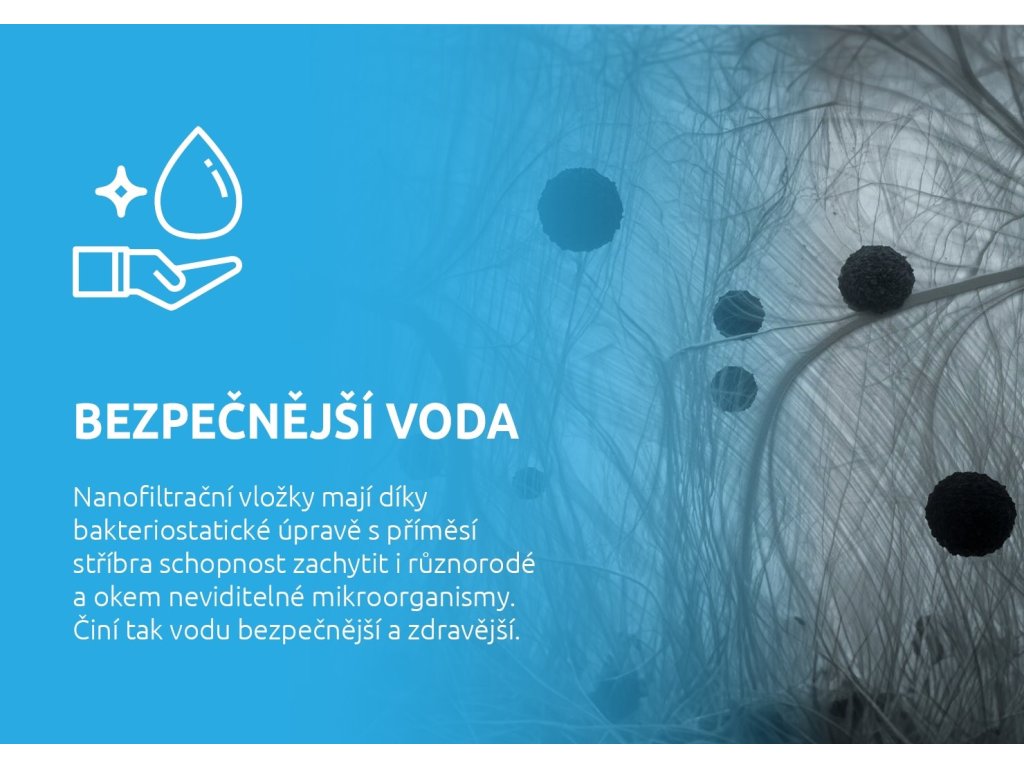 Výhody NANOfiltra v porovnaní s existujúcou kazetou S1 - schopnosť zachytávať aj veľmi malé častice a mikroorganizmy - nanofiltračné patróny s bakteriostatickou úpravou striebra - vysoká účinnosť filtrácie a lepšia kvalita vody (3-krát vyššie zachytenie) - nižšie náklady na údržbu a výmenu filtra - filtre sú odolnejšie a majú 5x dlhšiu životnosť BalenieDodatočné parametre