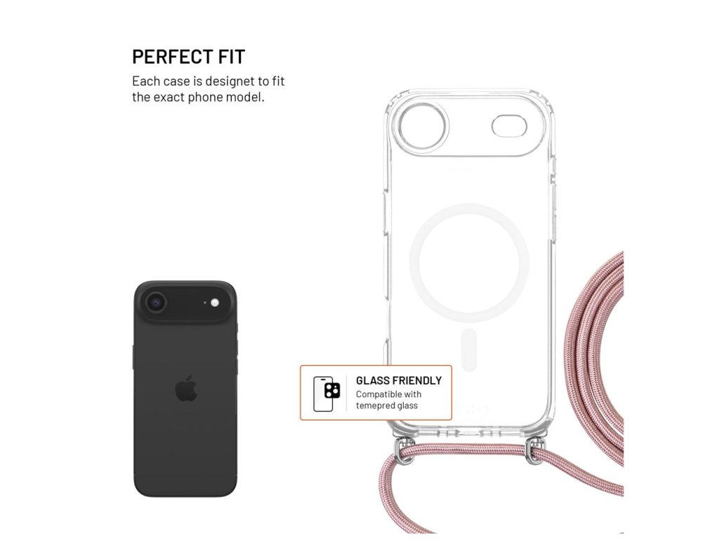 FIXED MagPure puzdro na krk s ružovou šnúrkou pre Apple iPhone Air