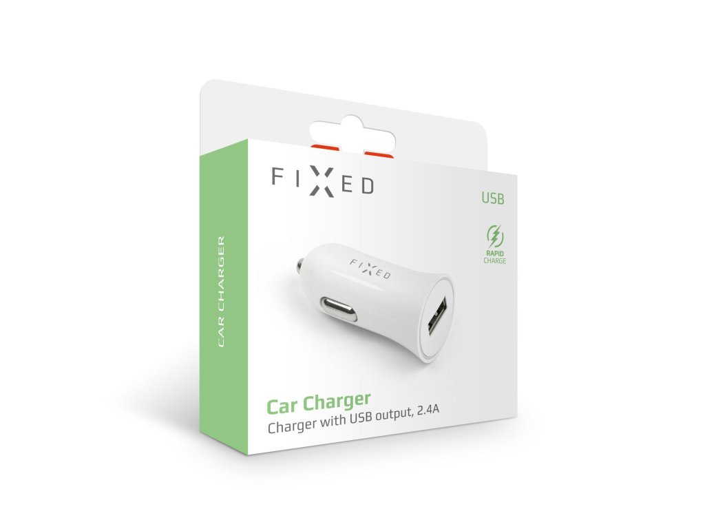 FIXED nabíjačka do auta s výstupom USB, 12 W, biela