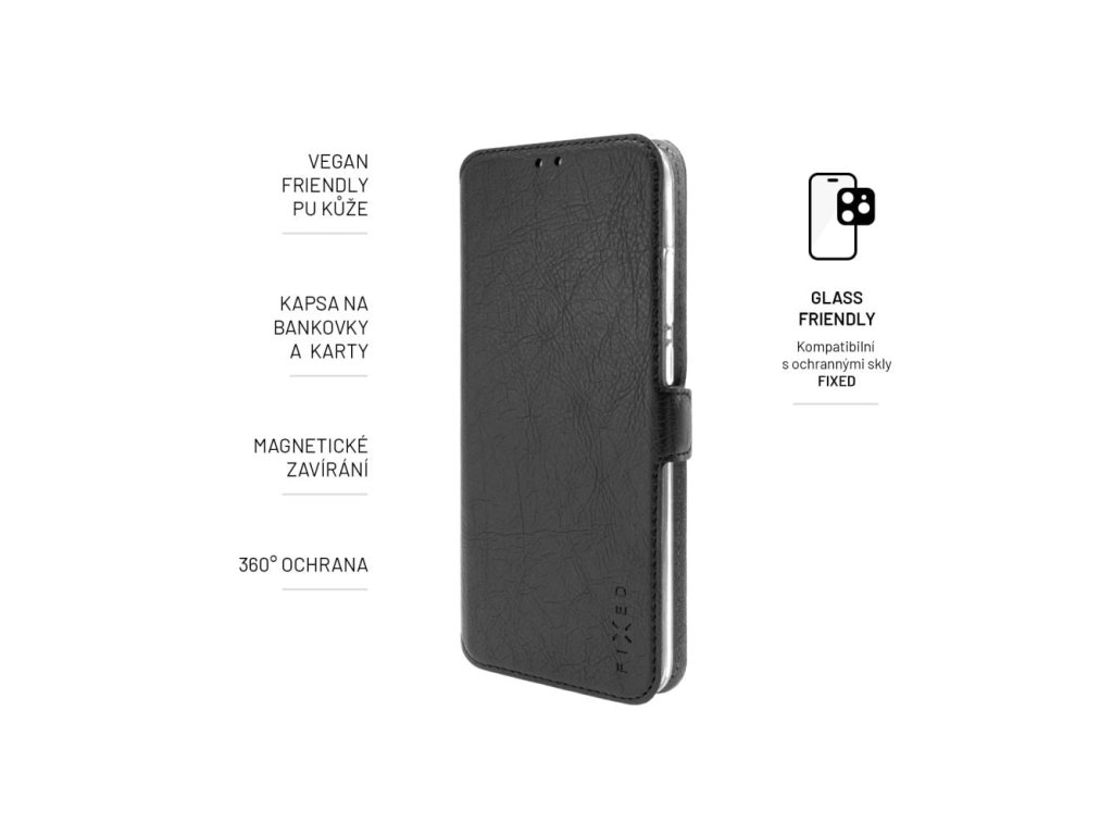 Elegantné, tenké a praktické pouzdro FIXED Topic book, navrhnuté špeciálne pre váš telefón. Puzdro je vyrobené z kvalitnej a odolnej PU kože, obšité po okrajoch, čo zaručuje dostatočnú ochranu telefónu pred poškodením. Odklápacia predná časť puzdra zakrýva displej telefónu a je zabezpečená zatváraním na magnet. Na vnútornej strane odklopnej časti nájdete praktickú kapsu na kreditnú kartu. Priehľadný kryt TPU vo vnútri puzdra je prispôsobený danému typu telefónu. Všetky ovládacie tlačidlá zostávajú plne prístupné, rovnako ako konektor na nabíjanie a reproduktory. Gélový materiál krytu navyše uľahčuje vkladanie a vyberanie telefónu. Na zadnej strane puzdra sa nachádza otvor pre fotoaparát alebo aj čítačku otlačkov prstov. Vďaka dômyselnej konštrukcii možno puzdro nastaviť do praktickej stojanovej polohy, čo oceníte najmä pri sledovaní filmov alebo videohovoroch. S puzdrom FIXED Topic získate dostatočnú ochranu pre svoj telefón v elegantnom a štýlovom dizajne. Vlastnosti: Vhodný na používanie v mobilných telefónoch, ktoré sú vybavené funkciami na ochranu pred poškodením: - puzdro typu kniha - vyrobené z kvalitnej PU kože - navrhnuté tak, aby presne pasovalo na daný typ telefónu - vnútorná priehľadná TPU vanička - mimořádne tenký dizajn - kapsa na kreditnú kartu na vnútornej strane - magnetické zatváranie - funkcia stojanaDodatočné parametre
